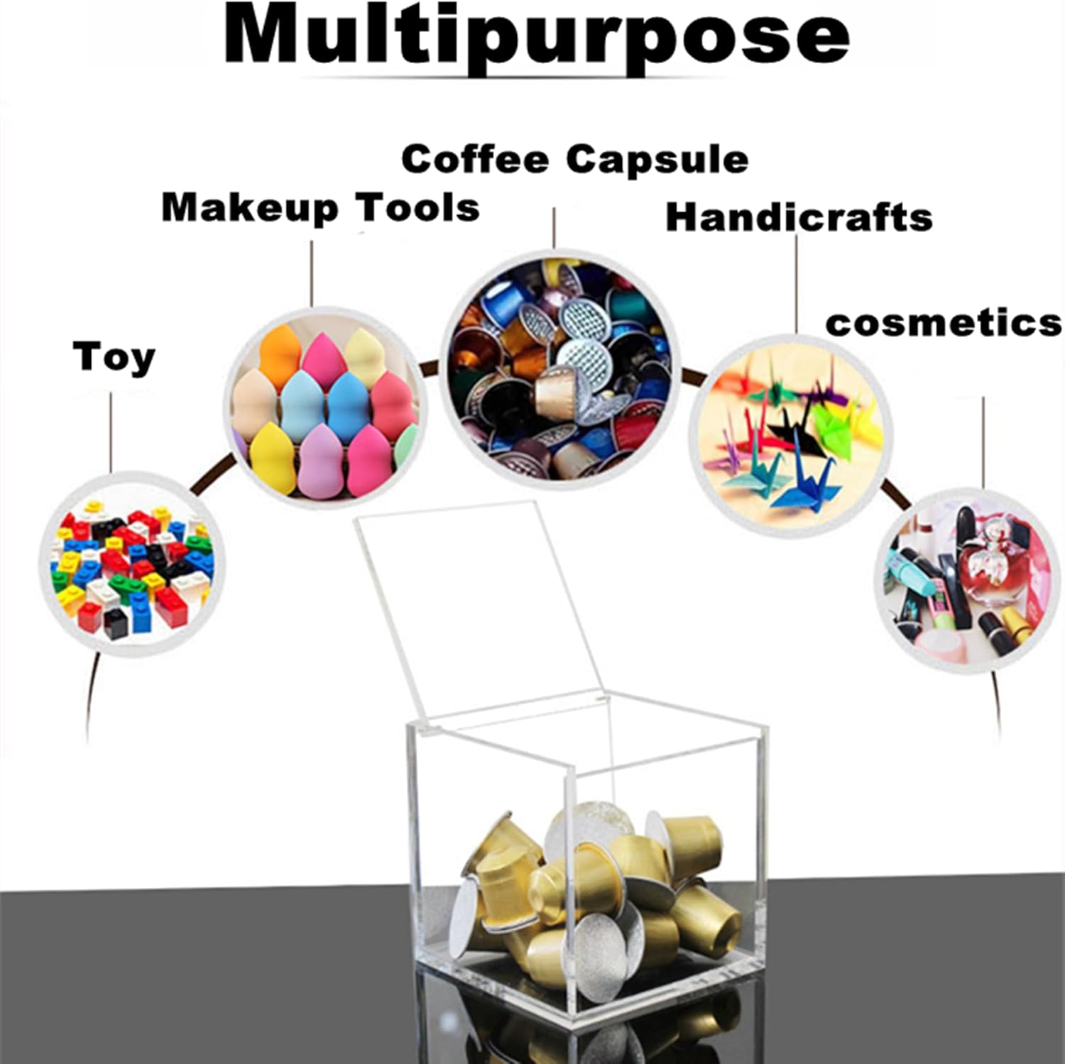 - Usage Acrylic Box - Perfect for storage earring, necklace, anklet, bracelet, rings, contact lenses, hair band, treasure, etc.Suitable for gift, decorating dresser, bathroom, display Jewelry, serving in the party, wedding centerpieces.Organize jewelry, vanity, cosmetic,makeup brush, perfume etc