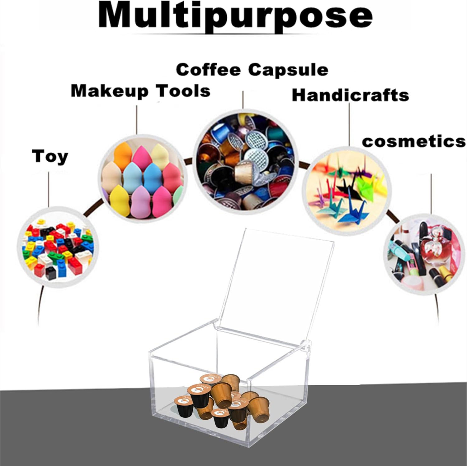 KissYou Acrylic Box with Lid Clear Storage Contanier Coffee Pod Holder Organizers Accessories Clear Hinged Lid Box