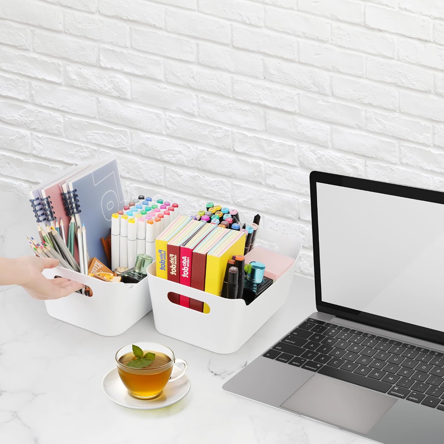 Tiawudi 12 Pack Storage Bins, Plastic Storage Containers, Multi-Use White Organizer Bins for Cabinet, Pantry, Drawer, Closet, Countertop or Shelves