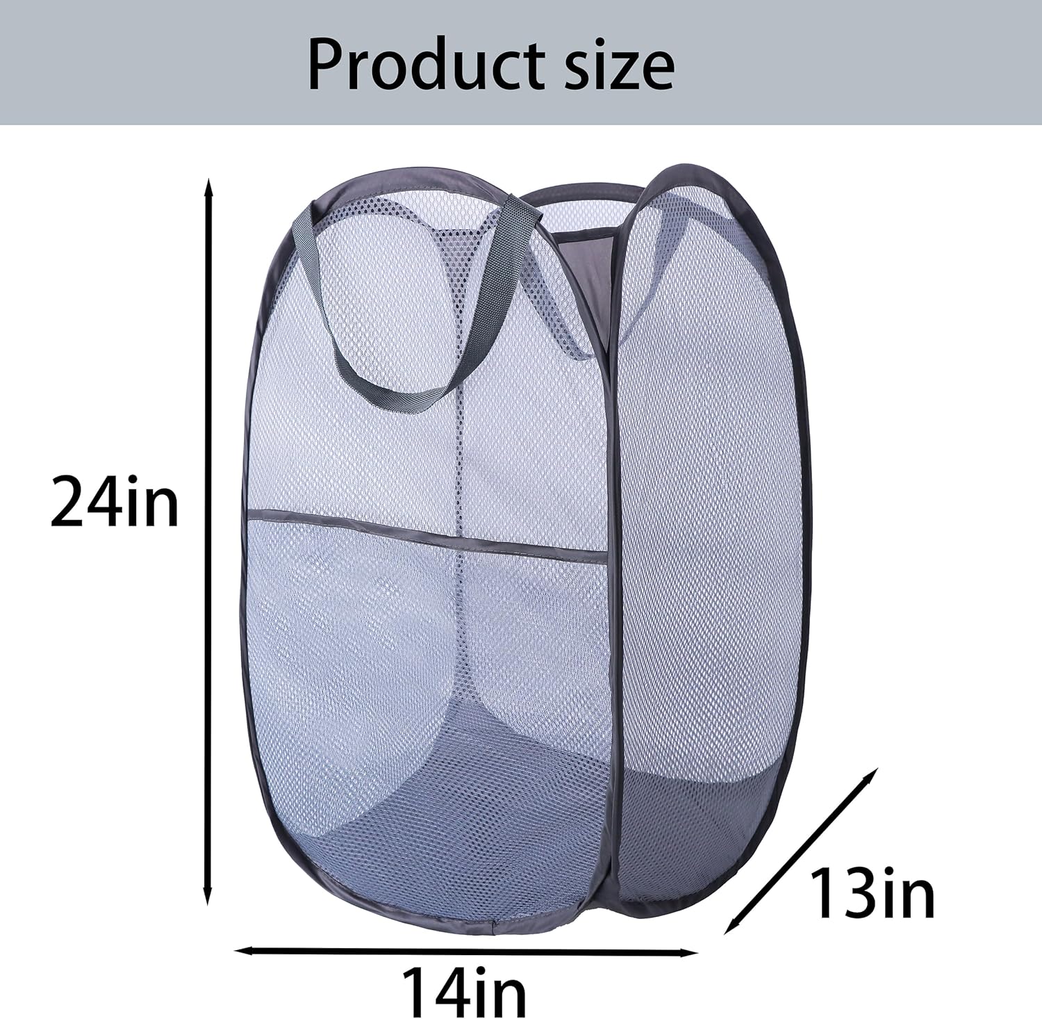 Foldable Mesh Popup Laundry Hamper,Laundry Basket Easy to Open and Fold for Dorm,Travel, College Dorms, and More (2 dark gray)