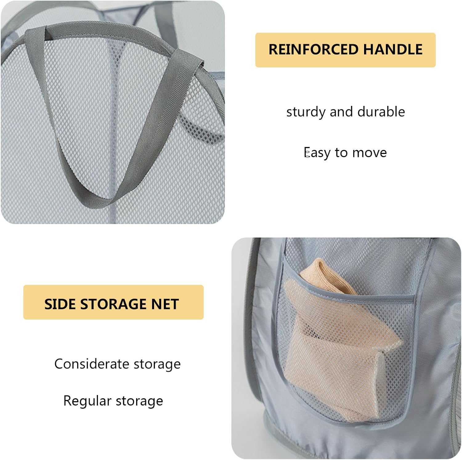 - Convenient Side Mesh Pockets: Our pop-up laundry hamper is equipped with practical side mesh pockets, allowing you to separate and store smaller items such as socks or delicates. Keep your laundry organized and easily accessible!