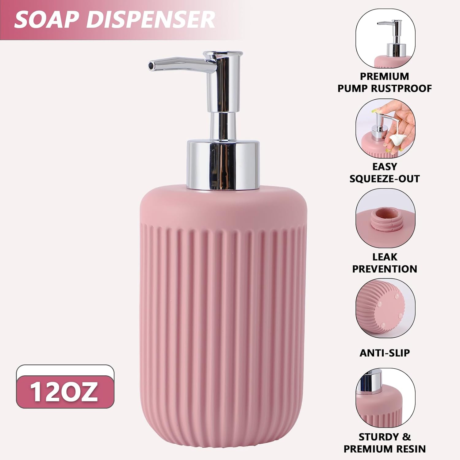 - 【 High-Quality Resin Material】: All accessories of the bathroom set are made of high-quality resin material, which is more durable and stronger than ceramic or plastic ones, and won’t easily break like glasses. The waterproof design makes the bathroom soap dispenser and toothbrush holder set last longer in humid environments. A smooth surface is easy to clean and simply rinse and wipe with a soft cloth