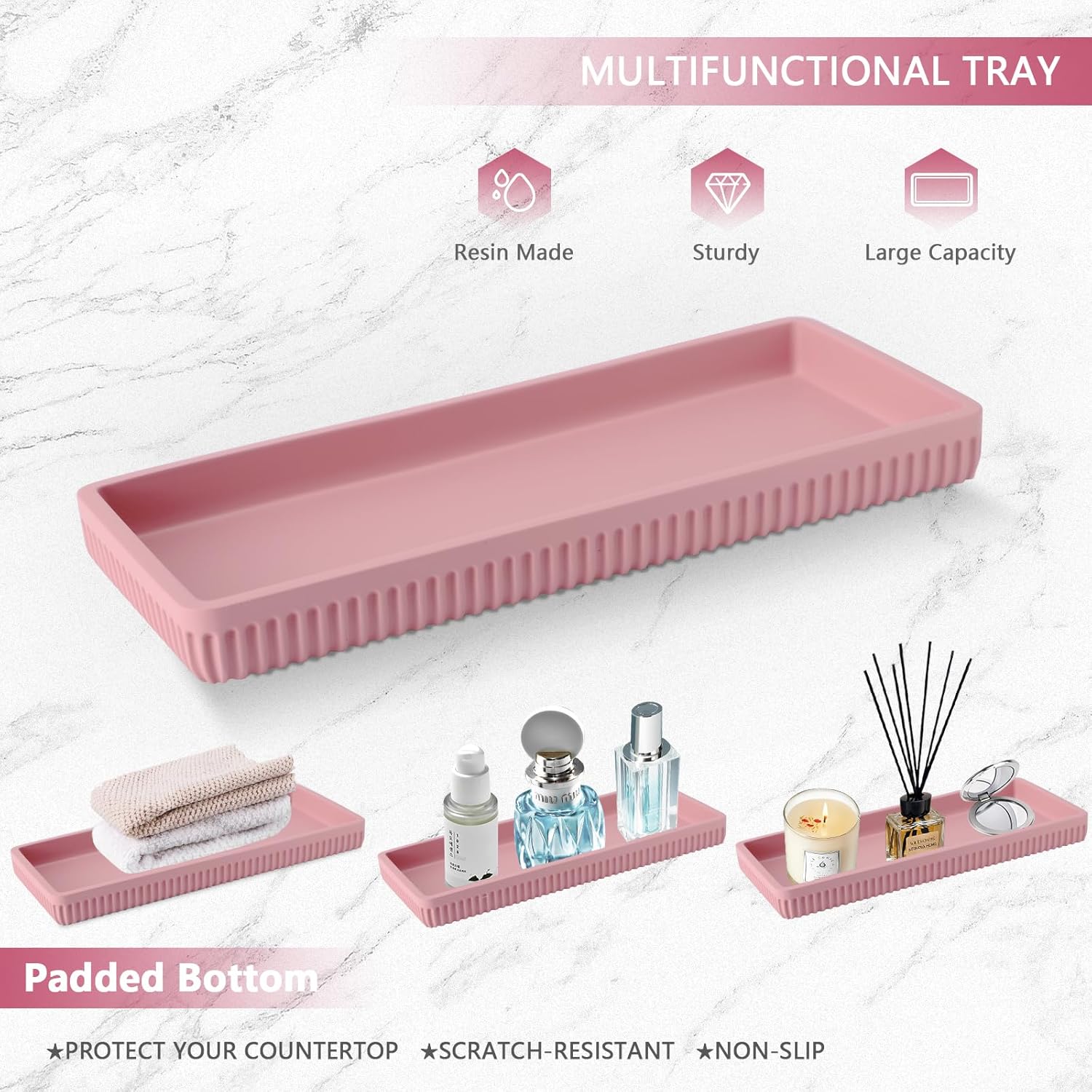 - 【Combination Of Functionality & Elegance】:The unified style of the bathroom accessory is set with any room and adds high-grade elegance and charm to it. This bathroom set holds all bathroom necessities, like body lotions, liquid hand soap, toothbrushes, toothpaste, soaps, and more. You can put them on the vanity tray to keep them in place and save space for your small bathroom