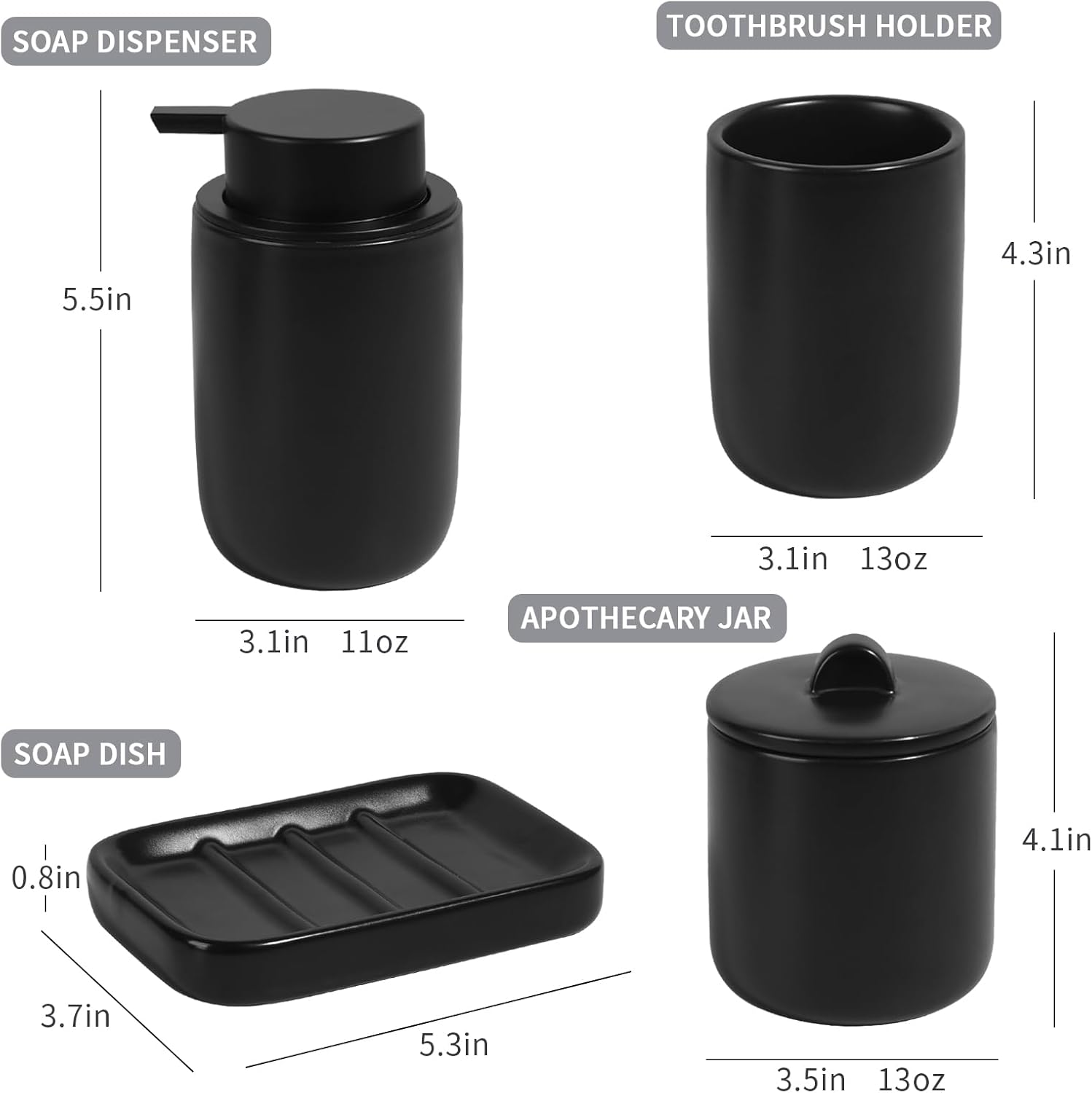 - Black Bathroom Accessory Set: 4 pcs farmhouse rustic decor ceramic bathroom set, perfect for any bathroom vanities or kitchen sink. Our complete bathroom sets crafted from premium ceramic with a smooth finish, both sturdy and easy to clean.