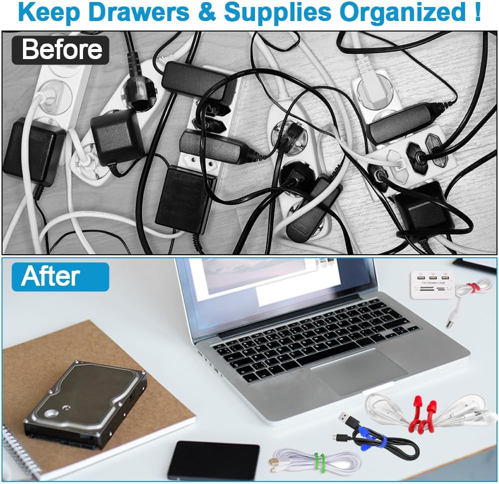 - 【Application】Feel free to twist it, and suitable for bundling power cords, headphone cords, food packaging bags, and all kinds of cords to keep your desktop neat.