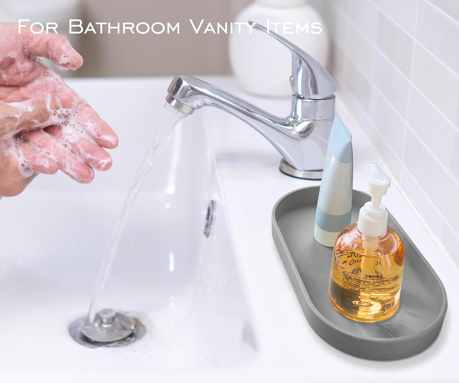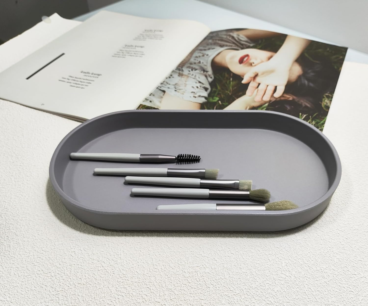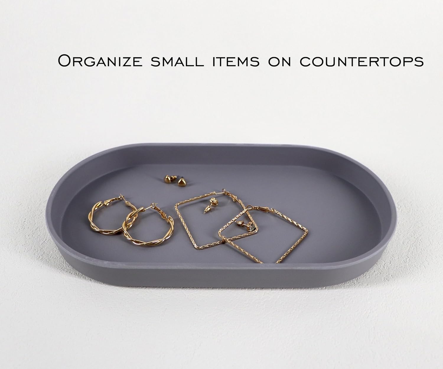 Gray Small Tray (10 inch), Oval Tray for Kitchen Counter, Bathtub Bathroom Vanity Items, Countertop Organizer, Coffee Accessory, Bar, Serving Seasoning, Salt and Pepper, Soap, Perfume.