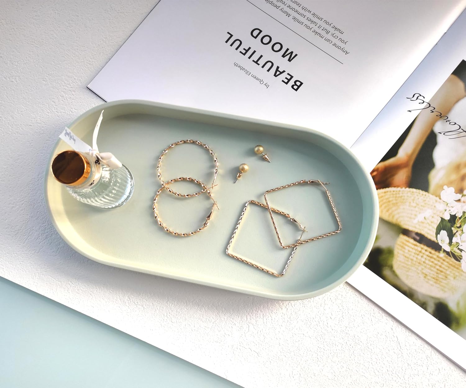 Green Small Tray (10 inch), Oval Tray for Kitchen Counter, Bathtub Bathroom Vanity Items, Countertop Organizer, Coffee Accessory, Bar, Serving Seasoning, Salt and Pepper, Soap, Perfume.