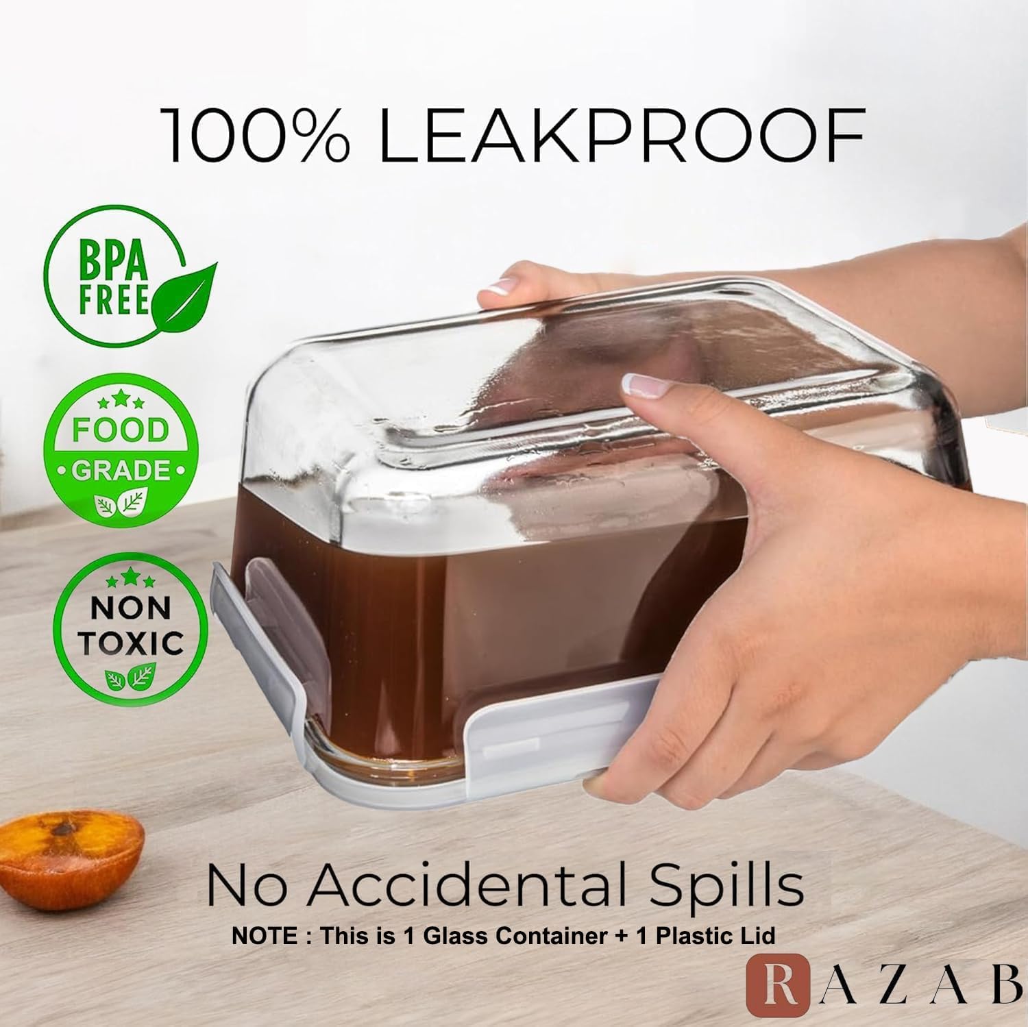 - LEAK PROOF STORAGE: Container Is Easily Sealed, Air Tight And Spill Proof. SQUARE GLASS FOOD CONTAINER - Keep Leftovers Fresh, Goes Straight From The Refrigerator To The Microwave Or Oven To The Table. Food Can Be Cooked Directly In The Container Using Microwave Or Oven. Less dead space while stored in refrigerator due to its Square shape.
