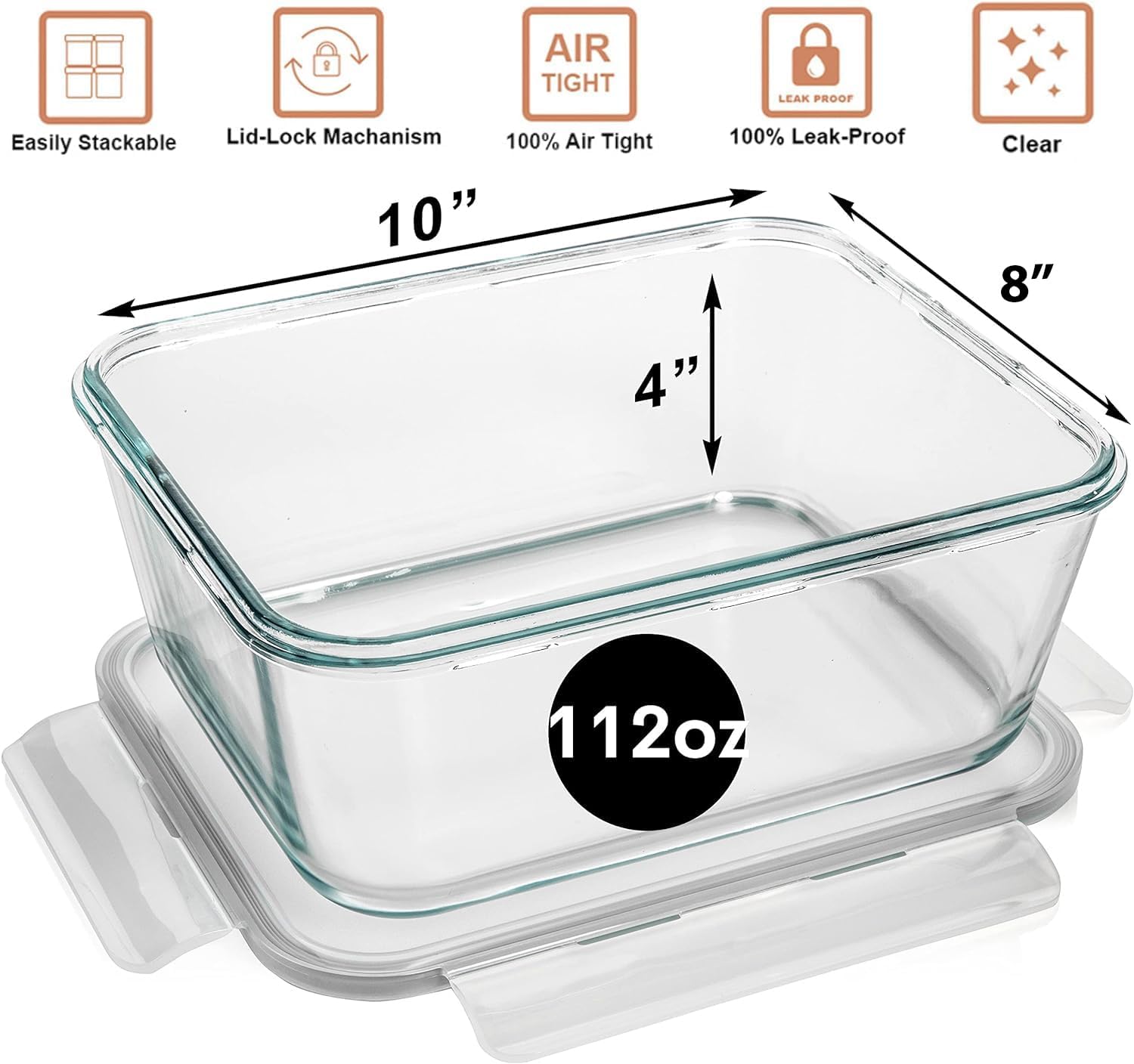 3300 ml/ 112 oz LARGE Glass Food Container with Locking Lid. Ideal for Storing food, vegetables or fruits. Baking Casserole, Lasagna, Baking Or Roasting chicken and lot of other tasty food. BPA Free