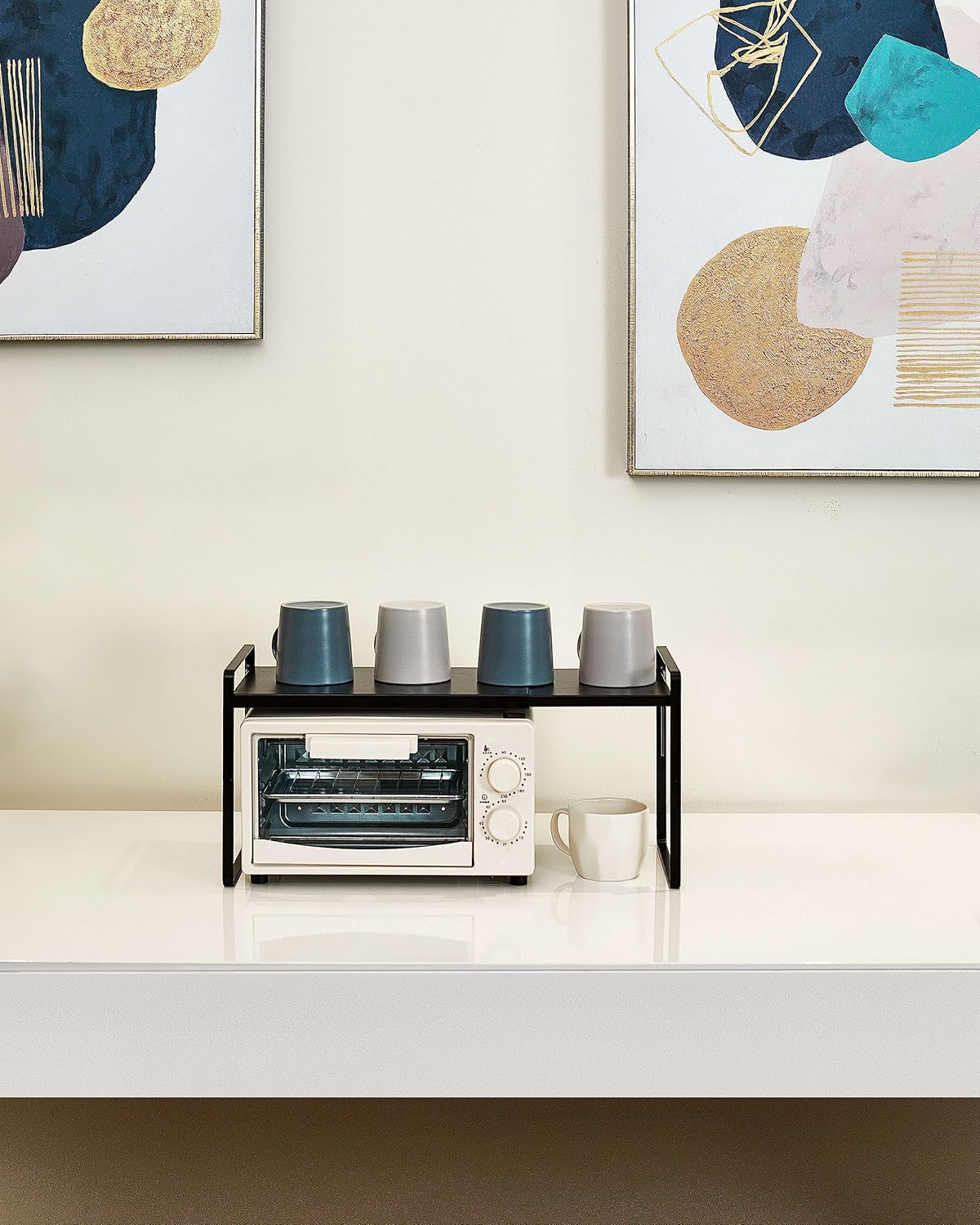 Nxconsu Cabinet Shelf Expandable Height Adjustable Organizer Riser for Kitchen Cabinet Pantry Cupboard Under Sink Countertop Organization Storage Space Saver Stackable Heavy Duty Metal Black XL