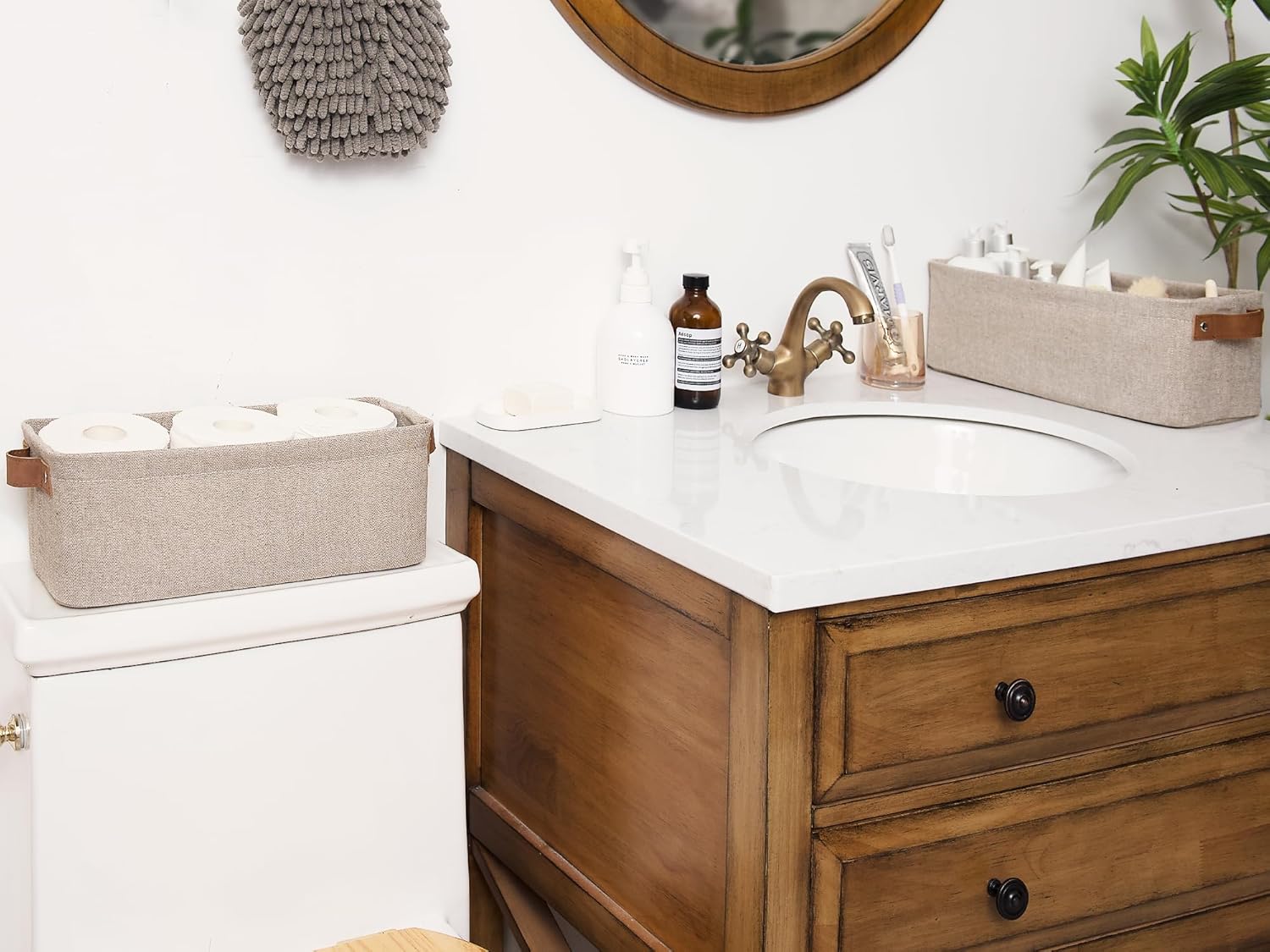 - The sleek modern design with 2 widened PU handles makes this small basket a great addition to any home.