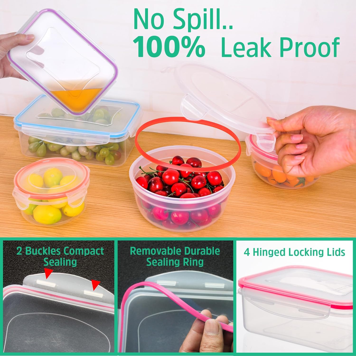 - LEAKPROOF AND OTHER BENEFITS: Our air tight food savers with 4 sides snap lock lids are microwave friendly (without lid), freezer and dishwasher safe, also good for carrying and storing as these are 100% percent leak proof . Now store everything without the fear of leakage