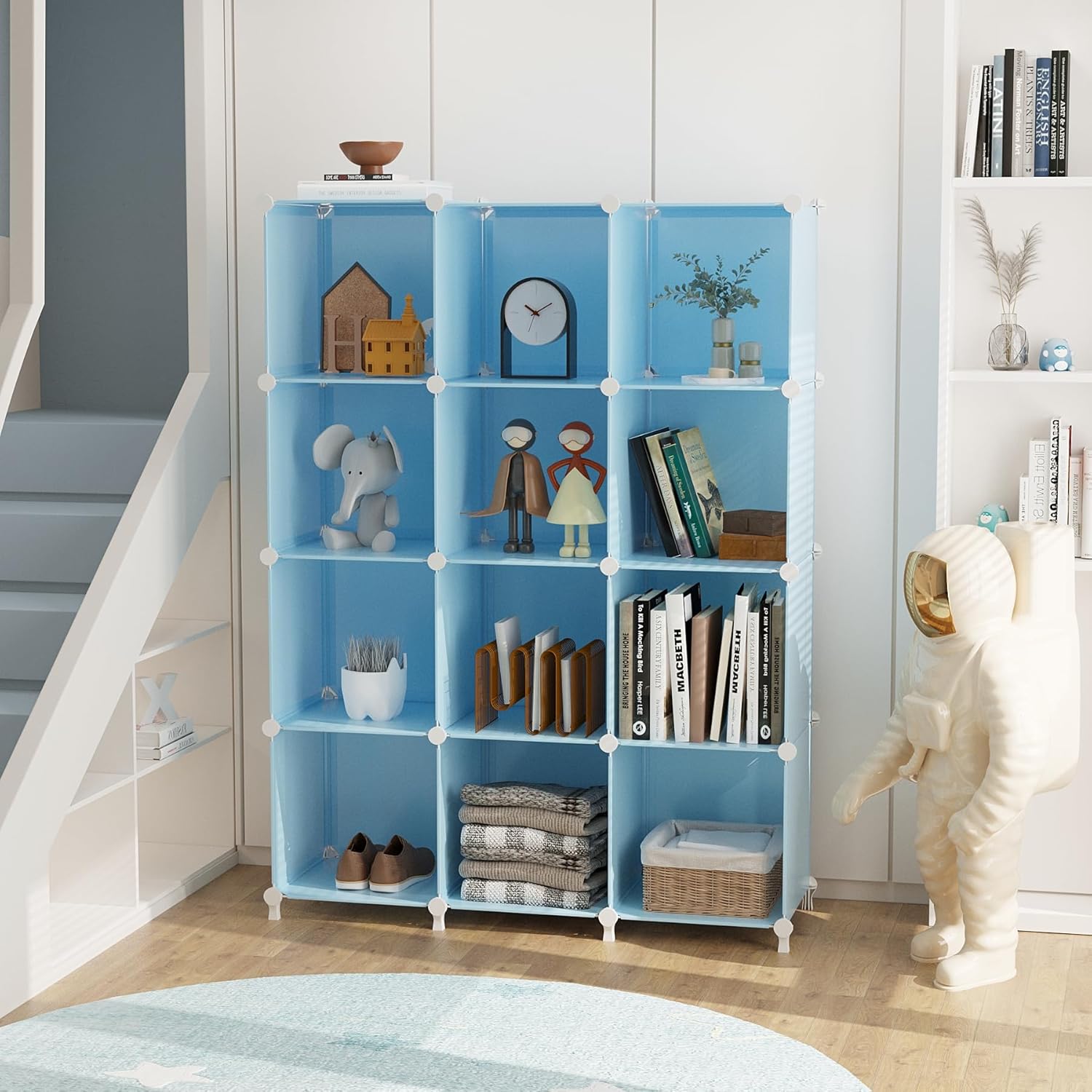 AWTATOS Cube Storage Organizer Protable Closet Organizers and Storage for Kids DIY Stackable 12 Cube Storage Shelves Clothes Organizer for Bedroom, Home, Blue