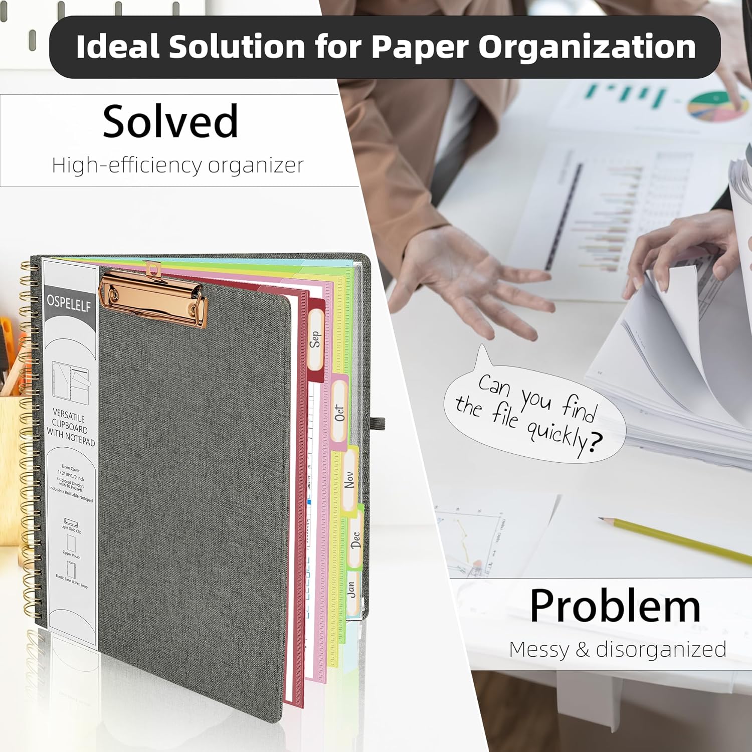 - 【Versatile Organizer】The spiral clipboard folio with folders is a versatile tool for students, teacher, nurse, professionals, artists, travelers, business, school, and anyone who needs to stay organized. Perfect for storing notes, documents, sketches, and more. It is a great gift for friends, family, and loved ones on birthdays, the school year, Christmas, Thanksgiving, or New Year,etc.