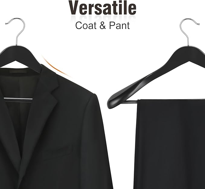 - Wide Shoulder Design: The wide shoulder design of the hangers provides ample support to your suits, coats and other kinds of clothes, which always keeps clothes in good shape