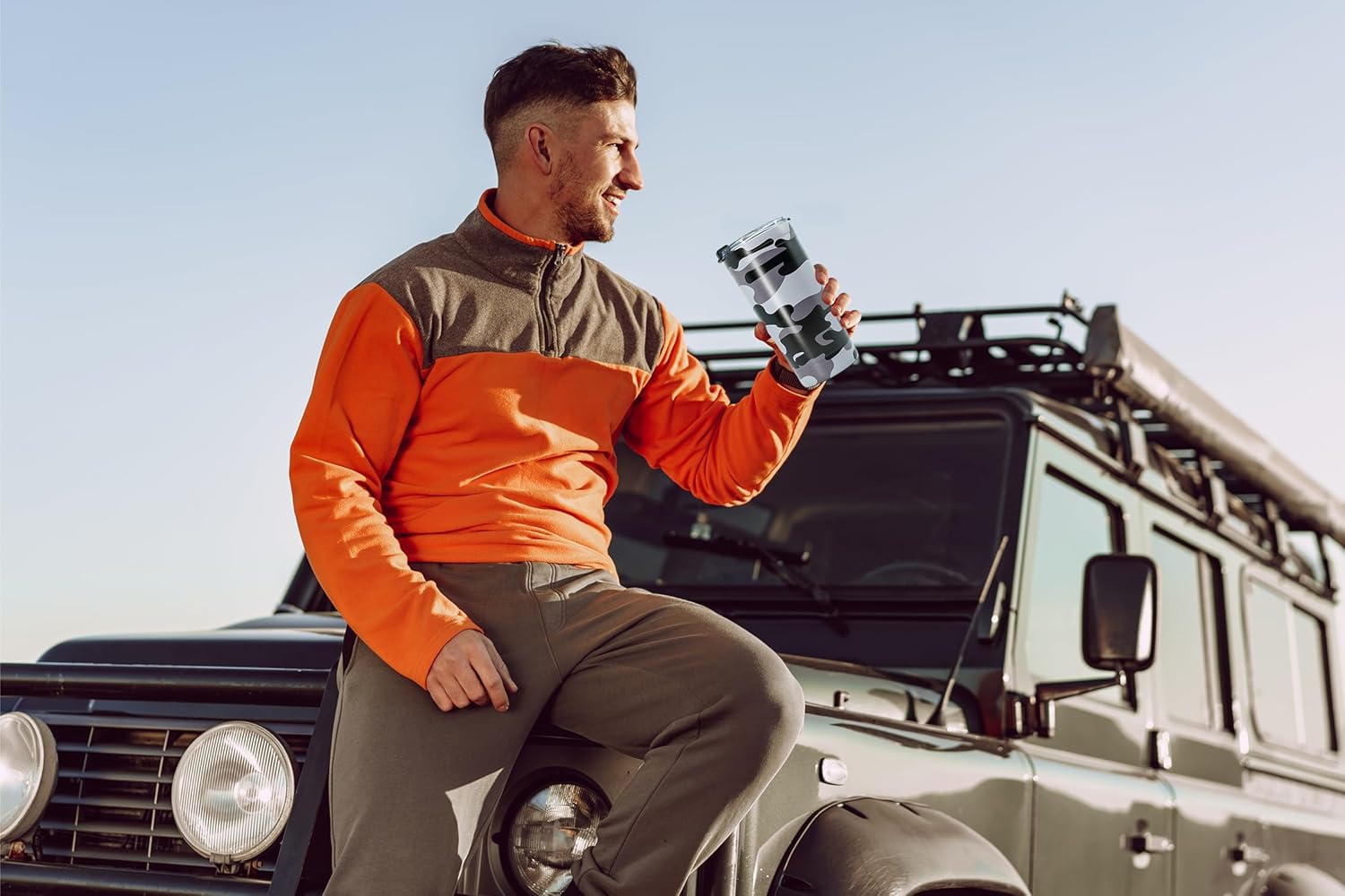 - DISTINCTIVE BLACK CAMO DESIGN: Make a statement with our tumbler's eye-catching black camouflage pattern, combining aesthetics with functionality.
