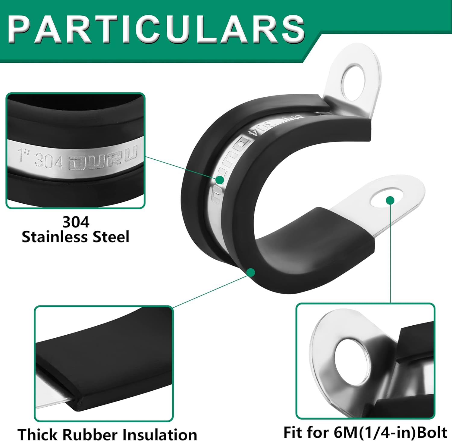 - OURU Insulated Cable Clamps Kit —The stainless steel hose cable clamps box set contains 100pcs 3/16" p-clamps.Fit for 6M( 1/4 inch) screw bolt to through the screw hole