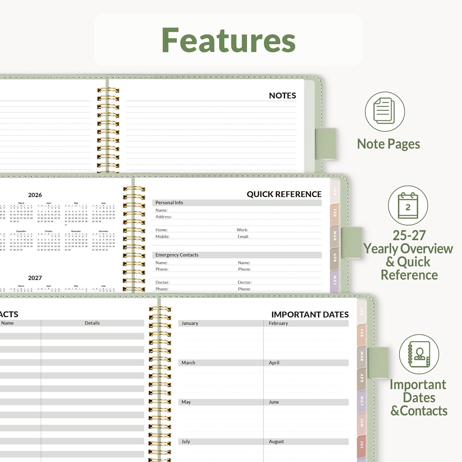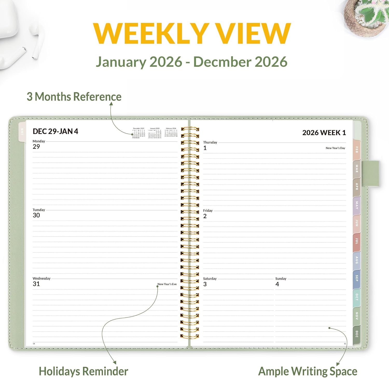 SUNEE 2026 Weekly & Monthly Planner 9"x11.2"- 12 Month (January 2026 - December 2026), Vegan Leather Cover, Pocket, Bookmark, Notes, Monthly Tab, Sage Green