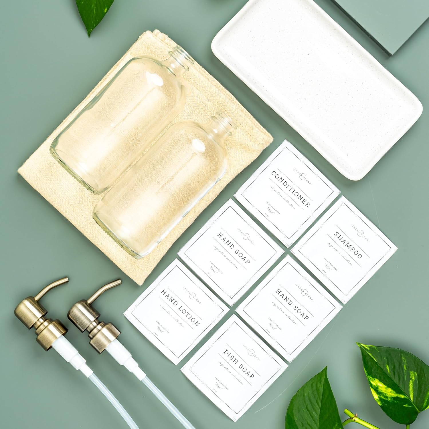 - UNRIVALED CONSTRUCTION - Set of 2 premium fortified clear glass soap dispenser with pump . 16 Oz hand soap and lotion set bottle for daily use. Vine Creations soap dispensers are Lead-free.