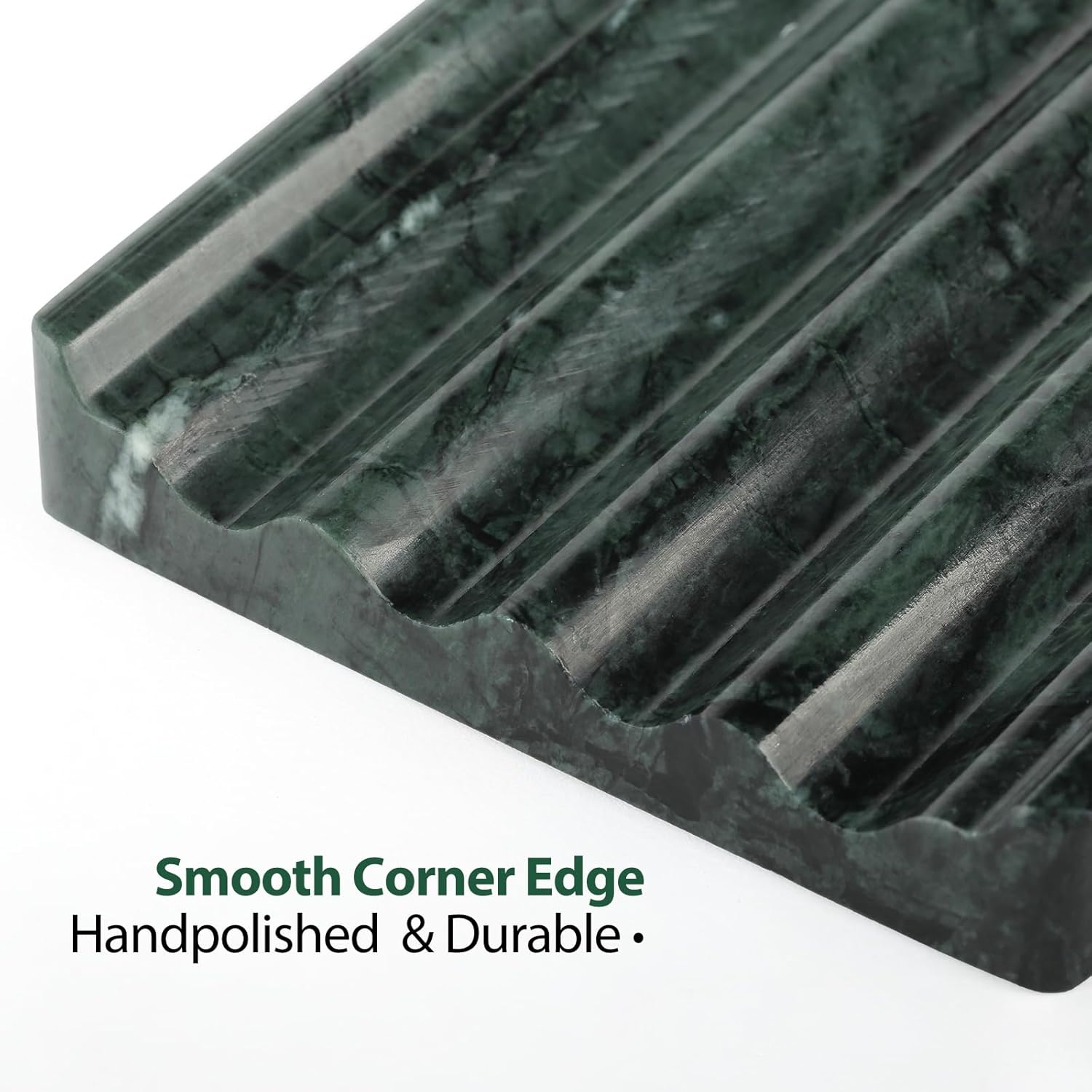 Koville Indian Natural Marble Soap Dish for Shower, Stone Soap Tray for Bathroom, Bar Soap Holder for Sink, Stripe Grooves Saver Sponge Holder Keep Soap Bars Dry Easy Clean (Verde Alpi)