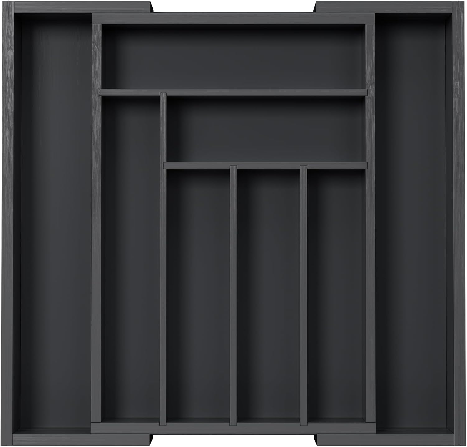 Pipishell Bamboo Expandable Drawer Organizer for Utensils Holder, Adjustable Cutlery Tray, Wood Drawer Dividers Organizer for Silverware, Flatware, Knives in Kitchen, Bedroom, Living Room(M-Black)