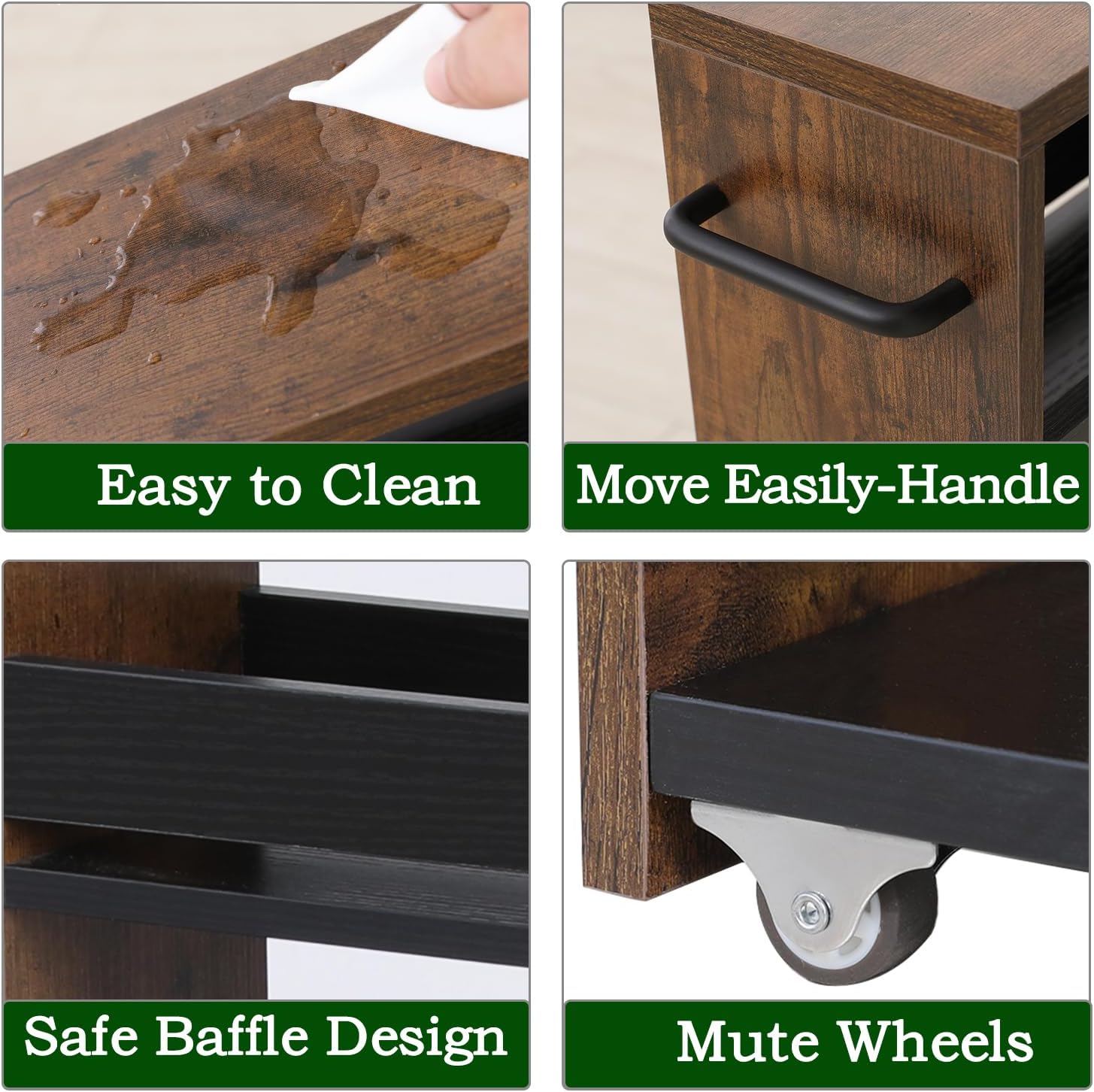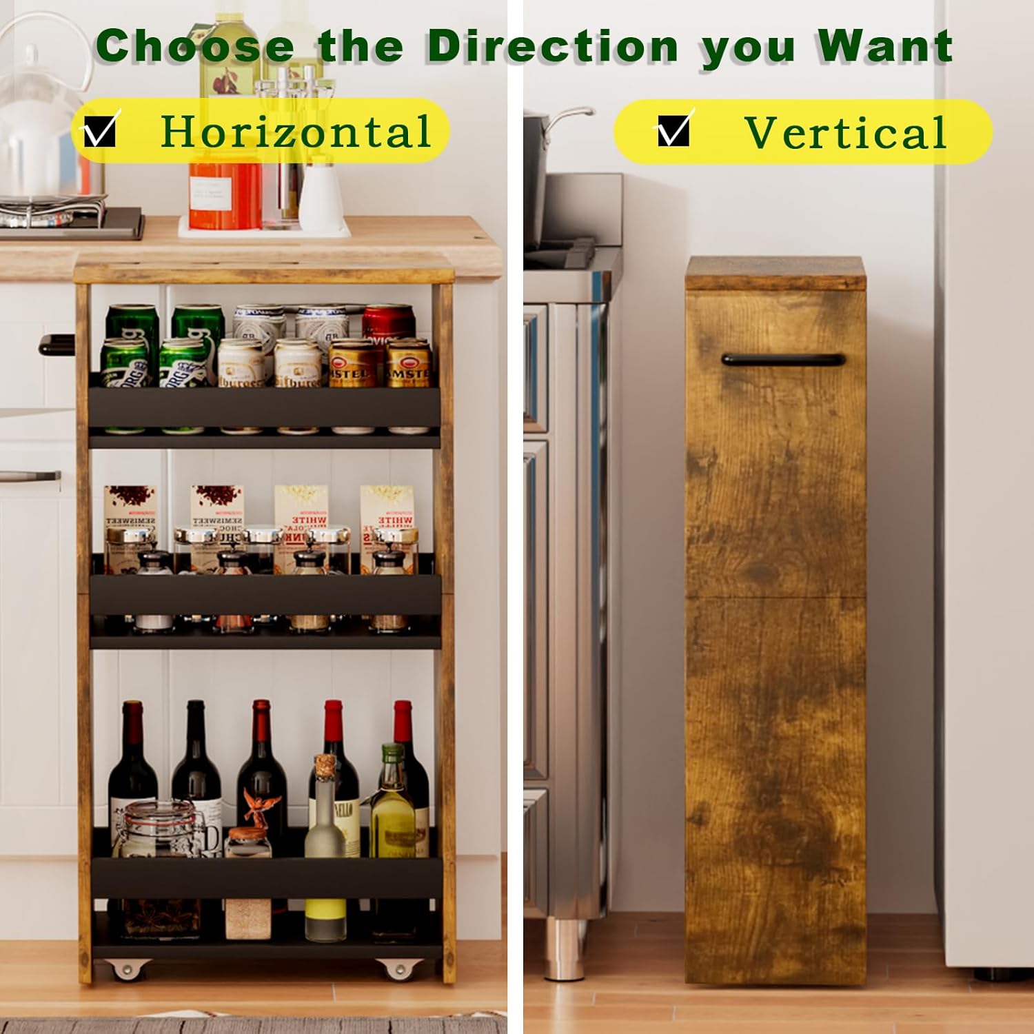 - 【Narrow Spaces Storage Design】This 4-tier storage cart is 7.9 inches wide and has plenty of storage space. It has 4 smooth wheels and 1 convenient handle. Can be used in closets, kitchens, bathrooms, garages, laundry rooms, offices, or washing machines and dryers.