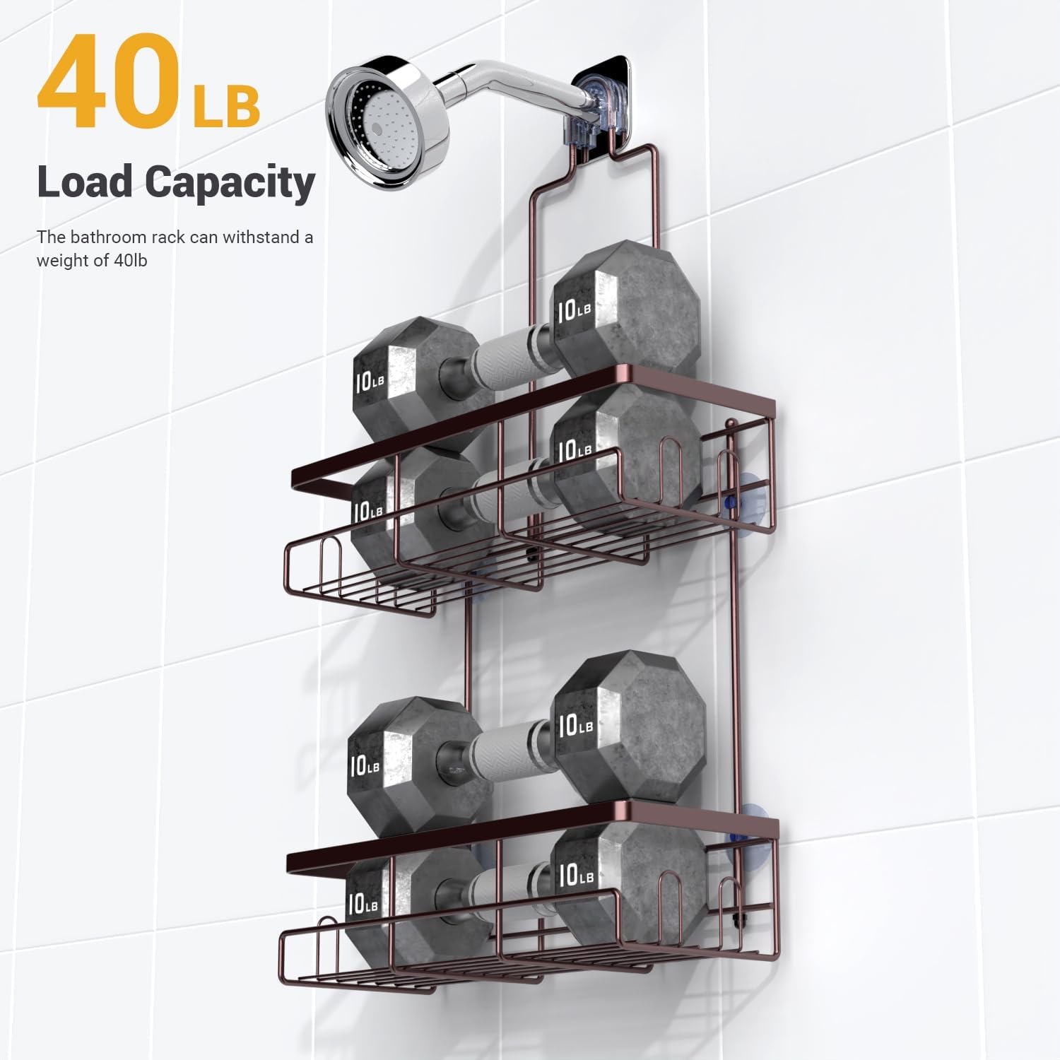 Shower Caddy Hanging Bathroom Organizer: Rustproof Shelf for Inside Shower - No Drilling, Over Showerhead - Bath Shelves for Shampoo, Soap - Bronze