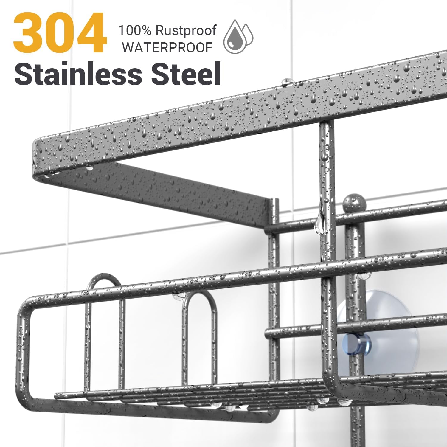 - 304 Stainless Steel & Fast Draining: The rust free hanging shower caddies are made of strong and durable stainless steel. It will not rust, is not easily deformed, not easily broken, and has a strong load-bearing capacity, making it very suitable for wet environments such as bathrooms. Thanks to our hollow grid design, you can easily keep your bathroom and toilet clean and fresh by quickly draining the moisture from the toiletries and shower organizer to keep them dry.