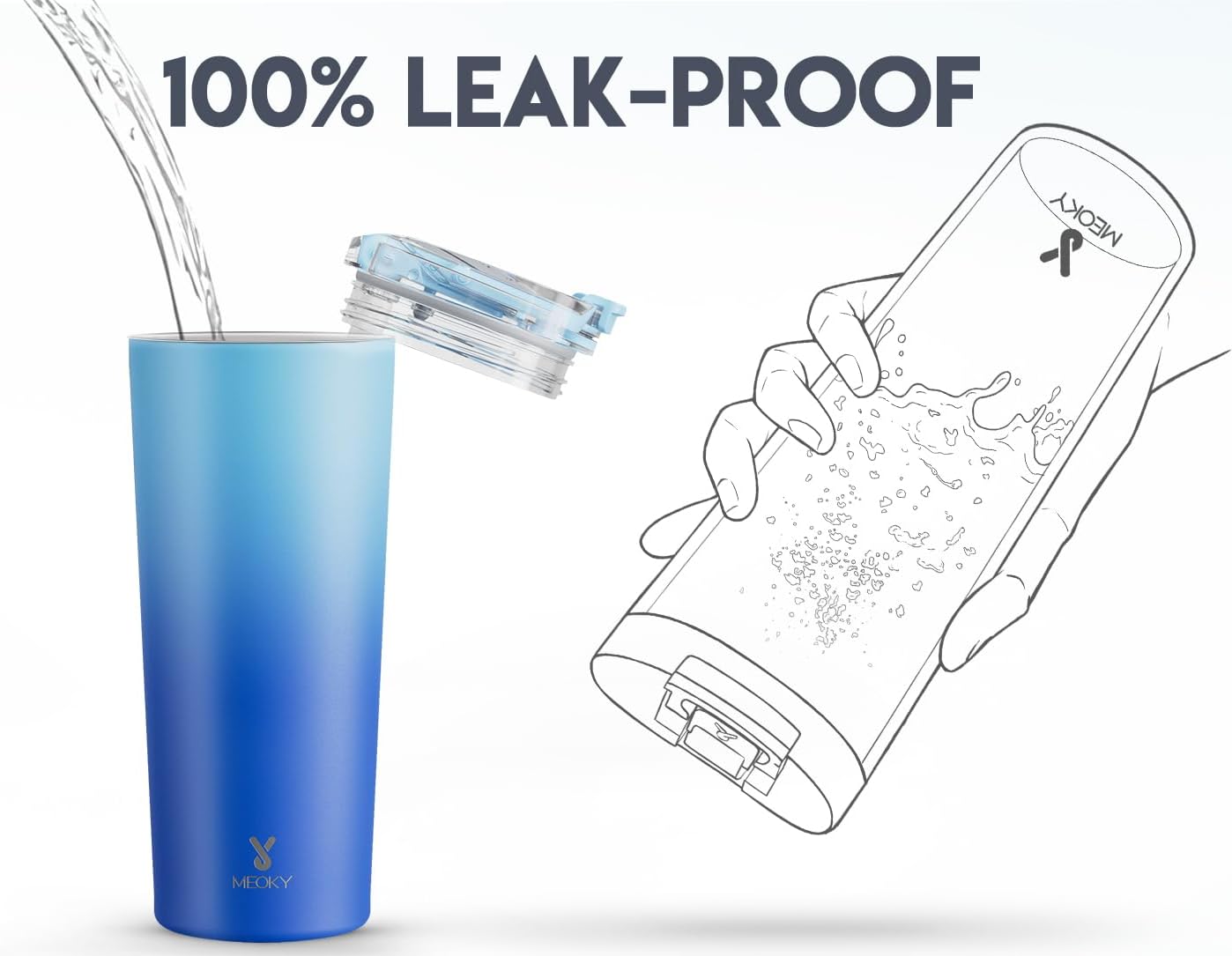 - NON-SLIP BASE. With non-slip base, Meoky travel coffee tumbler stands up and fights like a man.