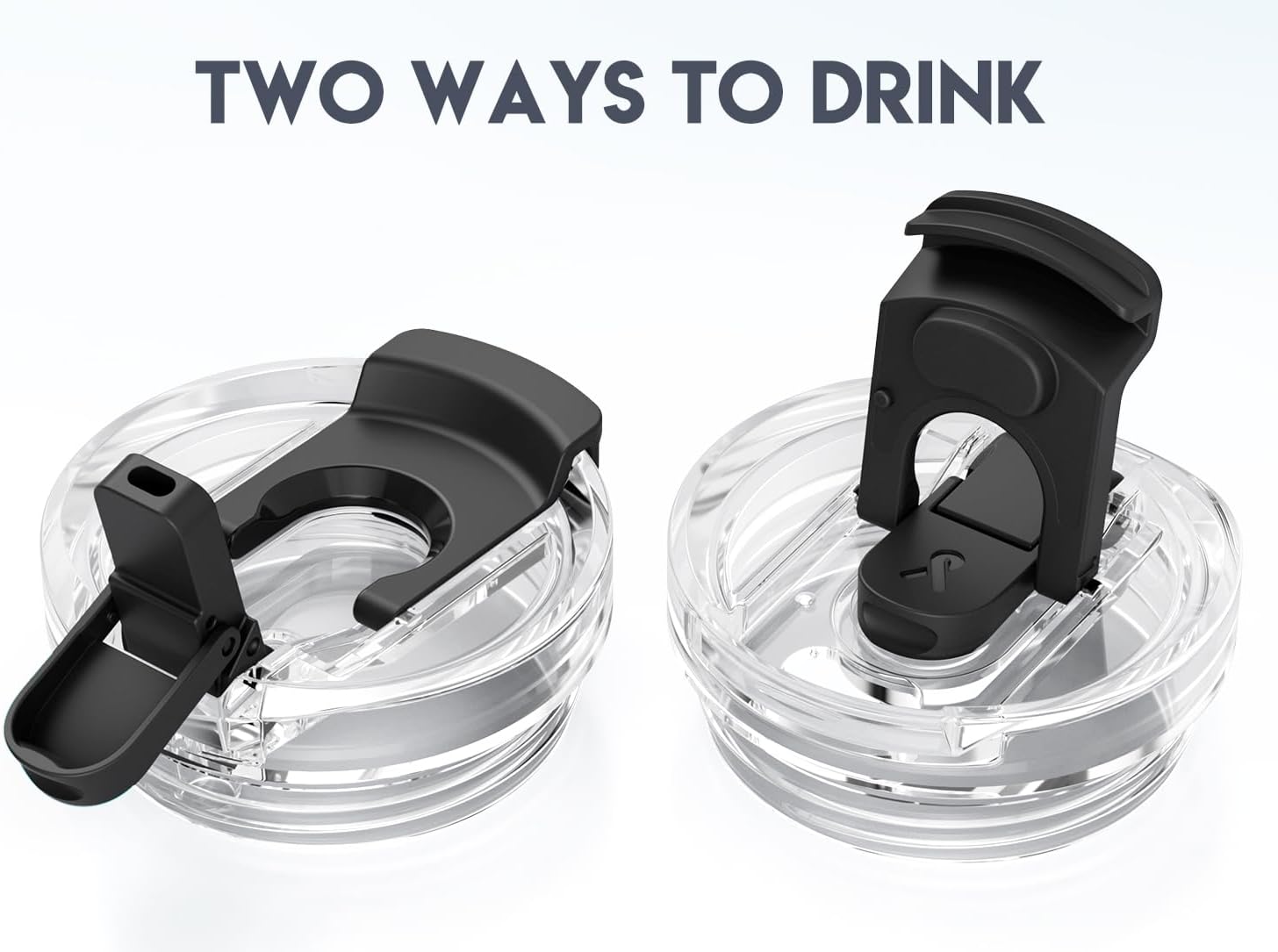 - 100% LEAK-PROOF. The 2-in-1 straw and sip lid offers 2 ways of drinking, and does a good job at being fully leak-proof with the double-thread and screw-on design. (The built-in straw is heat-resistant.)