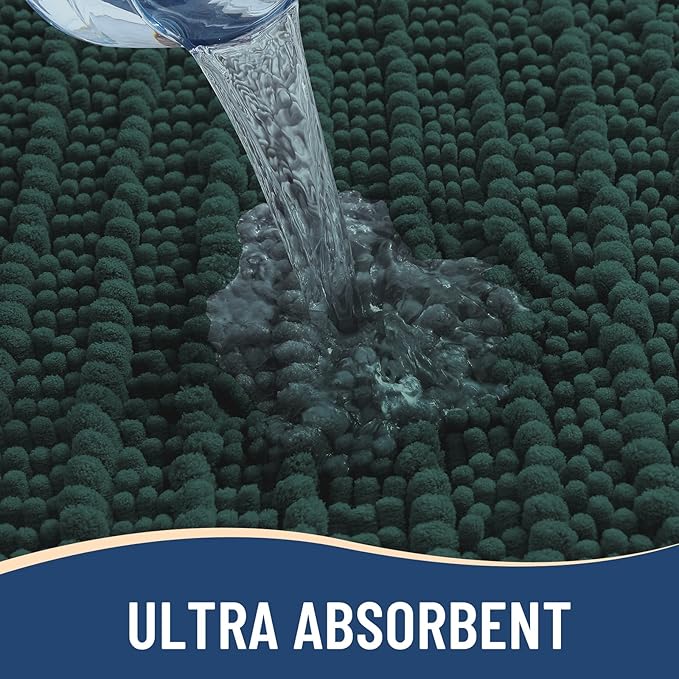 Arotive Luxury Chenille Bathroom Rug Mat, Extra Soft Thick Absorbent Shaggy Bath Rugs, Non-Slip Machine Wash Dry, Plush Bath Mats for Bathroom, Shower and Tub, 47x24, Dark Green