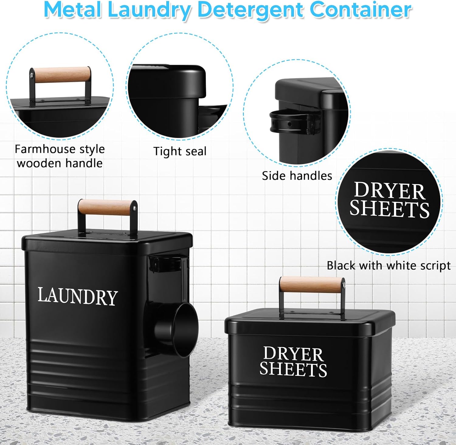 Metal Laundry Powder Container with Dryer Sheet Holder Modern Farmhouse Laundry Detergent Container with 1 Spoon Fabric Softener Dispenser with Lid for Space Saving Room Organization and Decor