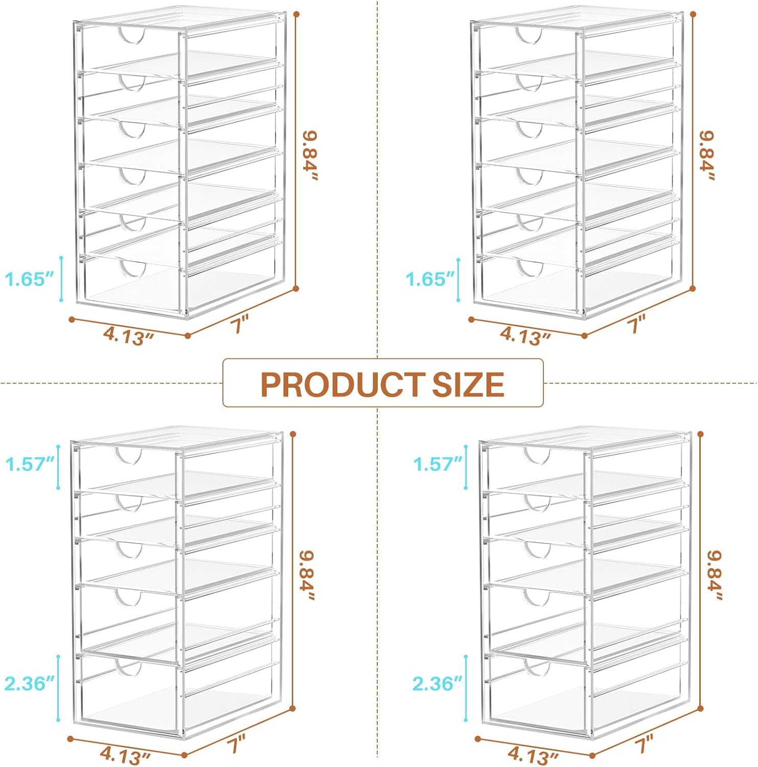 - Flexible Combination: Total 4 sets storage organizers with 22 drawers,You can flexibly use our storage organizer for house organization and storage according to your needs , The storage containers are stackable, with silicone mat, vertical storage will save a lot of space. You can also use them side by side. Put your small objects on top of acrylic bins to make your countertop space more tidy.