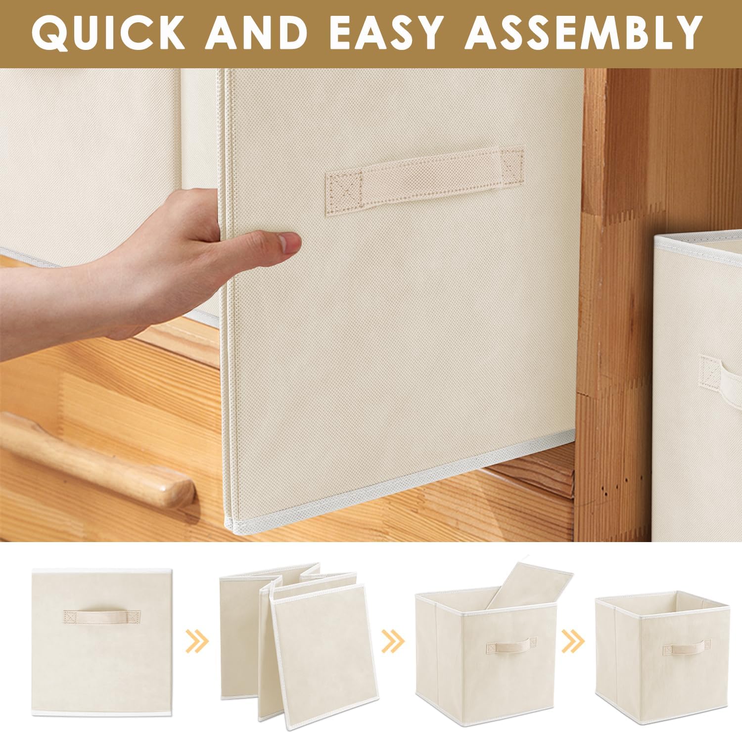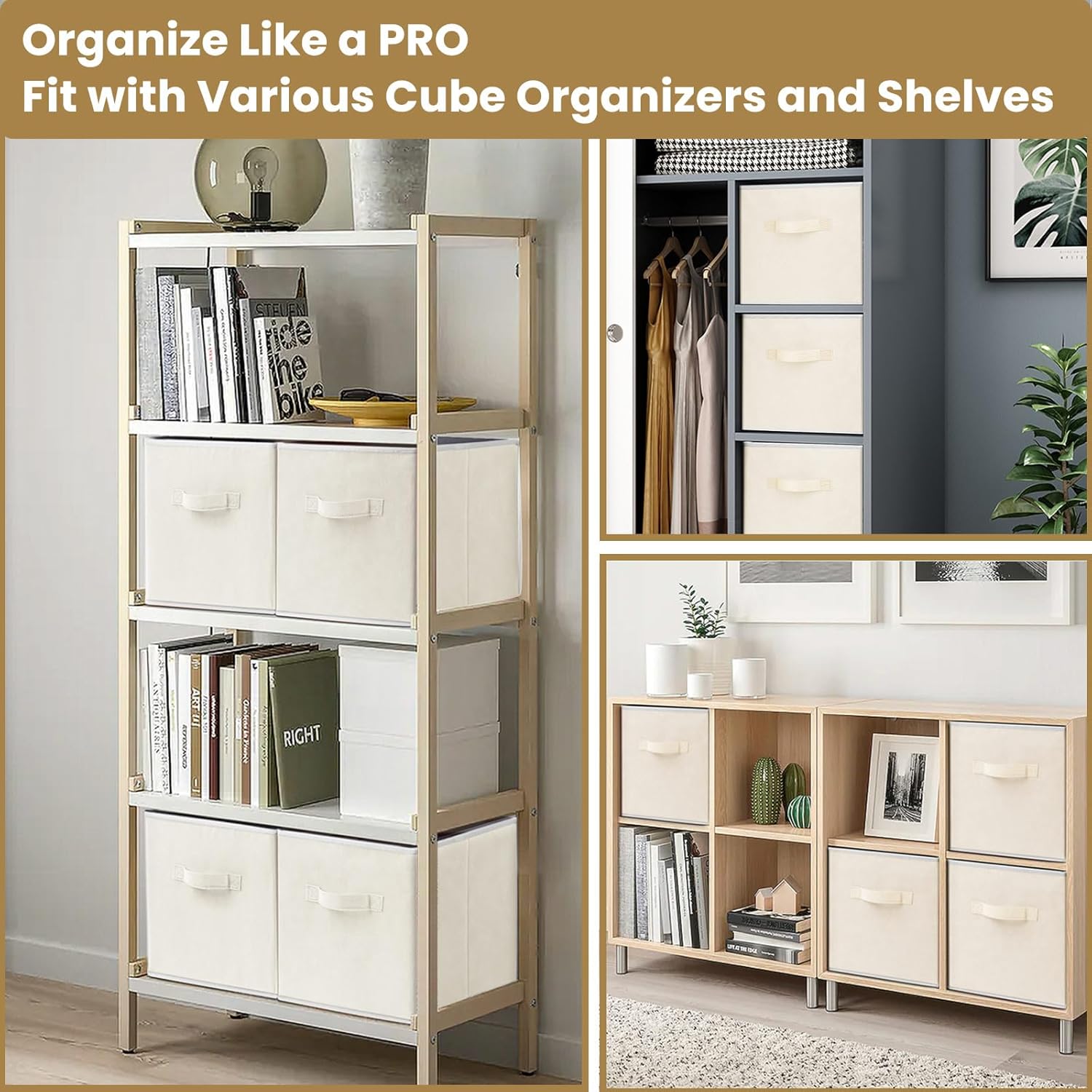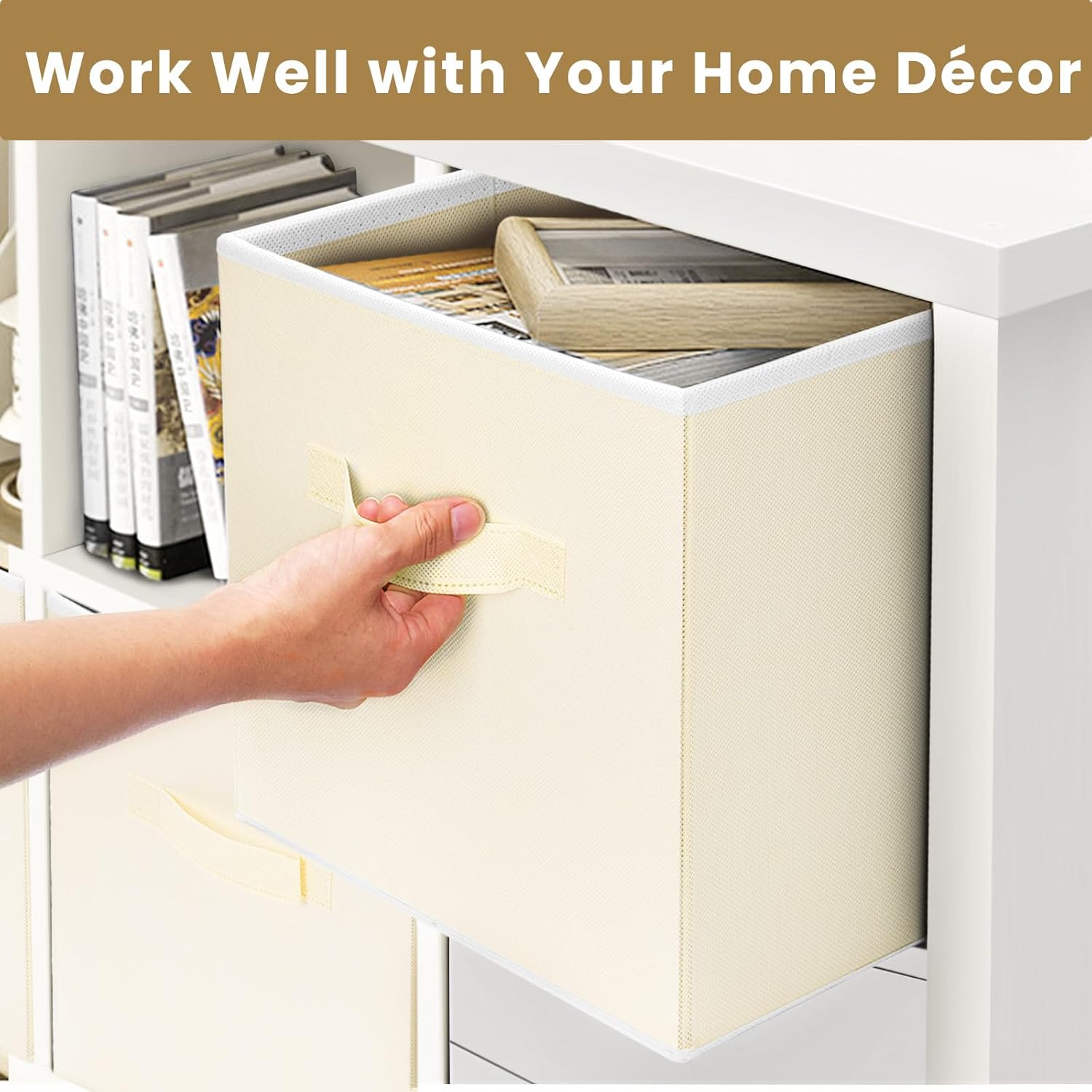 - 【MULTI-USE】Measuring 10.75x10.75x11 inches, our 10 pack beige clothes storage bins could fit perfectly with most of cube organizer, shelf, closet. Whether you're in the bedroom, playroom, or laundry room, these bins offer versatile organization and storage solutions for items such as clothes, linens, toys, books, and more.