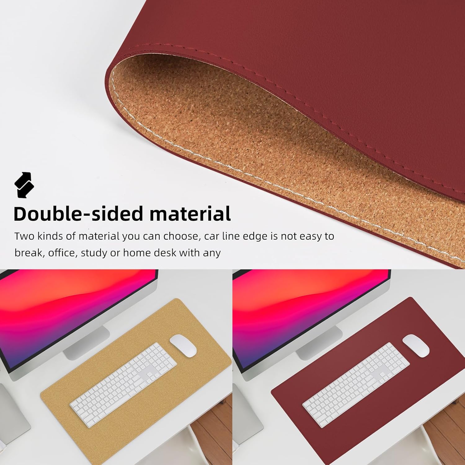 - Elevate Your Workspace: Our reversible desk pad is designed to complement any office or home desk with its premium materials and elegant black thread stitching. The natural cork base provides extra grip to keep your desk mat in place.