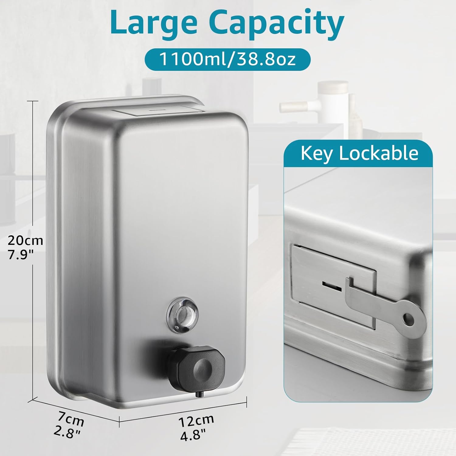 - Easy to Mount&Use: The soap dispenser supports drill in wall mount, comes with mounting parts. Design for public commercial areas, stable and practical to use, you could also use it in kitchen, bathroom and restroom, an elegant and industrial-style decor. Liquid/gel and lotion soaps liquid are applicable.