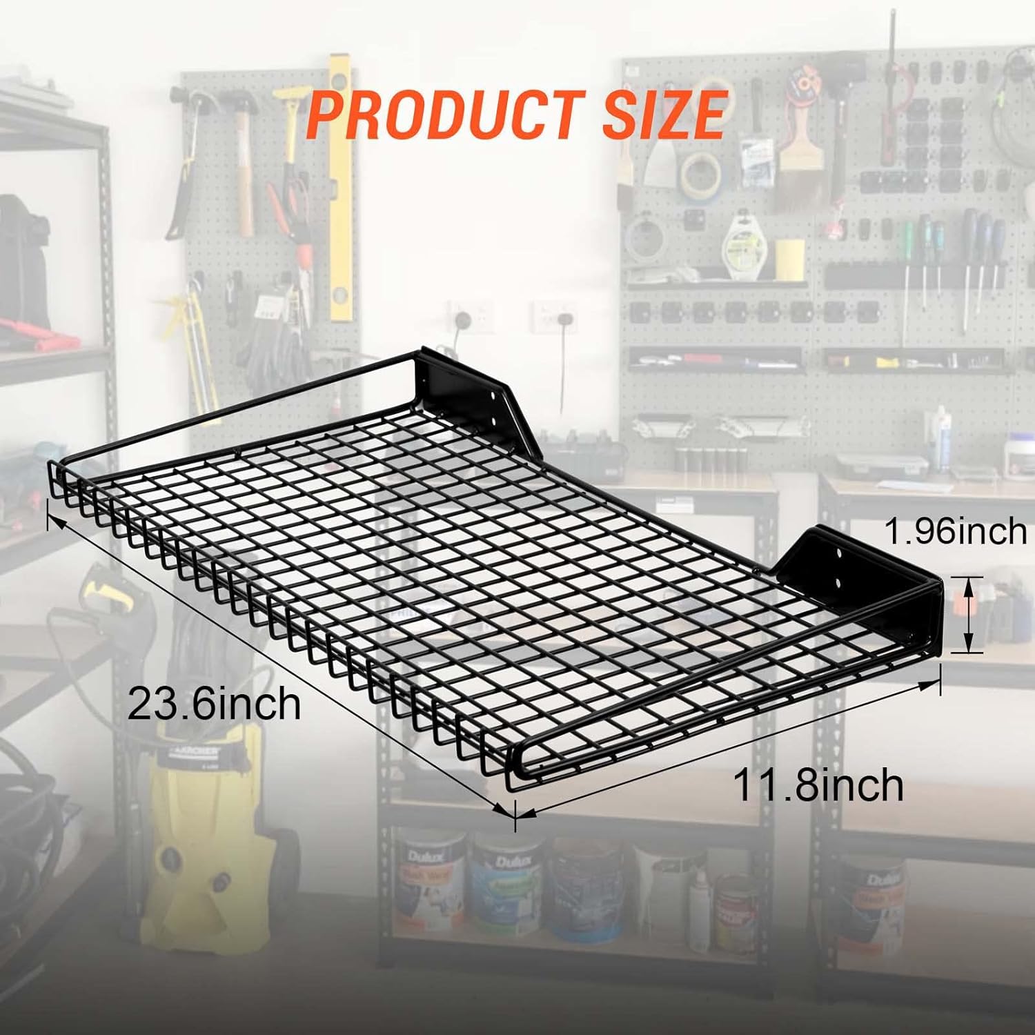 Wallmaster Heavy Duty Garage Wall Shelving 4 Pack 23.6"x11.8" Metal Wire Shelves Wall Mount Mesh Storage Rack for Garage, Office, Basement and Kithcen, max Load 65 lbs (Black)