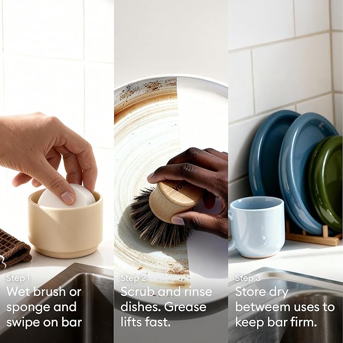 - POWERFUL NATURAL CLEAN: Cold-pressed dish soap bar crafted with saponified coconut oil and gentle plant-based surfactants that cut through grease and food residue while remaining kind to hands.