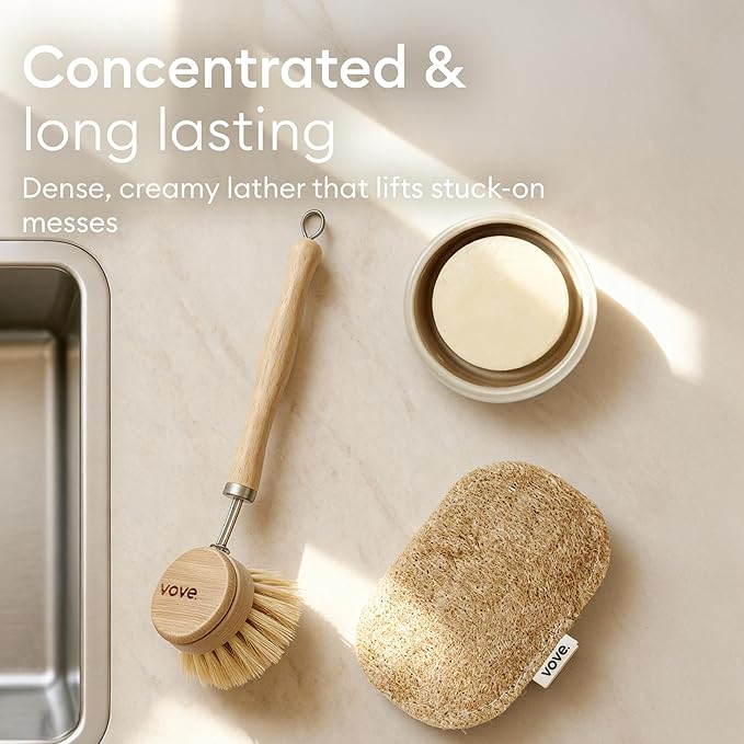 - THE VOVE DIFFERENCE: Experience our commitment to sustainability with our innovative dish soap bars, handcrafted in small batches with rigorous quality control. Our cold-pressed formula blends traditional soap-making with modern eco-conscious ingredients, creating a perfect balance of cleaning power and environmental responsibility.