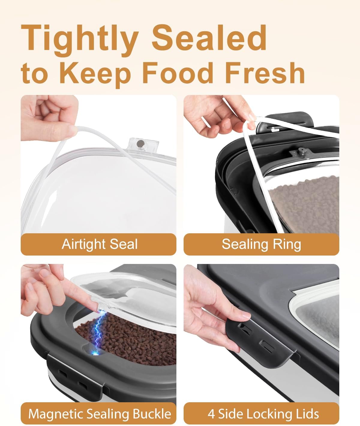 - Superior Sealing for Freshness: Our rice storage container is designed with a double airtight seal and 4 side locking lids, ensures your pet's food stays fresh longer, free from moisture
