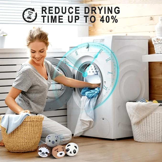 - SAVE ENERGY COSTS : These wool dryer balls absorb and release moisture, creating separation between clothing items for better air circulation, which speeds up the drying process,reduce drying time up to 40%