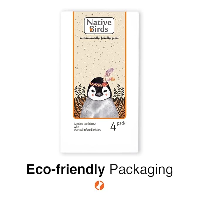 Bamboo Toothbrush with Extra Soft Charcoal Infused Bristles, Set of 4