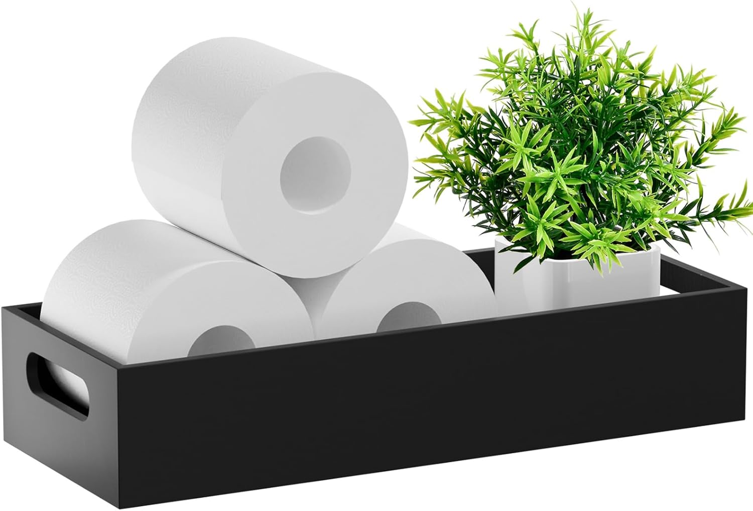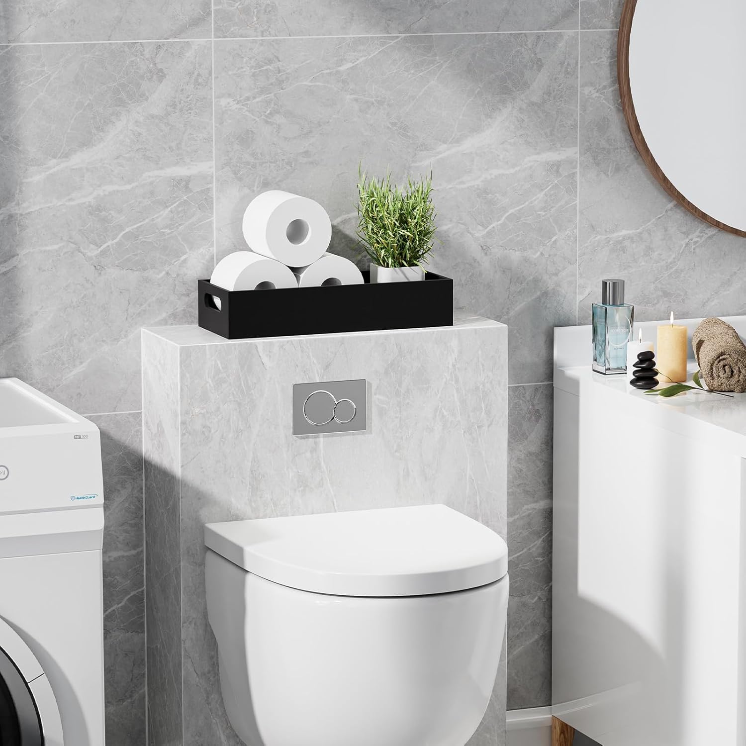 VITVITI Bamboo Toilet Paper Holder Storage, Bamboo Tray for Bathroom with Handle, Toilet Tissue Holder Organizer Basket Container for Toilet Tank/Kitchen Counter, Natural, Black