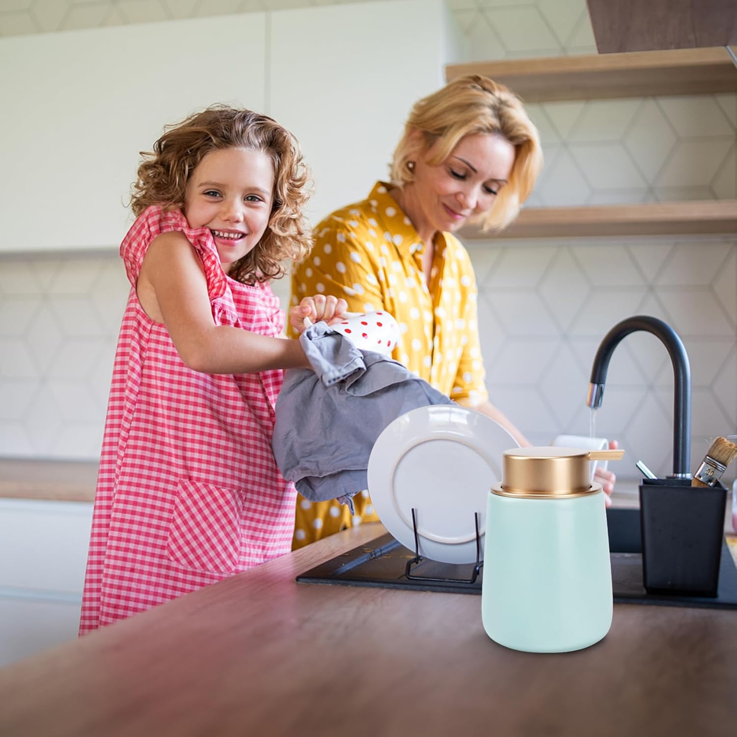 - LIQUID SOAP DISPENSER - Natural and safe dishwashing liquid dispenser, can add a variety of room temperature daily use liquid. Reusable, refillable, environmentally friendly and recyclable.