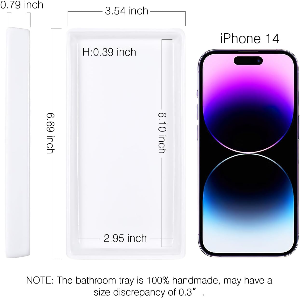 - 【Compact Size】The small tray measures 6.69*3.54*0.79 inch (17*9*2 cm). NOTE: The bathroom tray is 100% handmade, may have a size discrepancy of 0.3″. It is compact enough to fit in a small corner and store small things. This small decorative tray can be moved at any time.