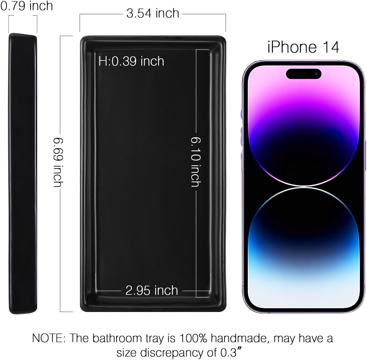 - 【Compact Size】The small tray measures 6.69*3.54*0.79 inch (17*9*2 cm). NOTE: The bathroom tray is 100% handmade, may have a size discrepancy of 0.3″. It is compact enough to fit in a small corner and store small things. This small decorative tray can be moved at any time.