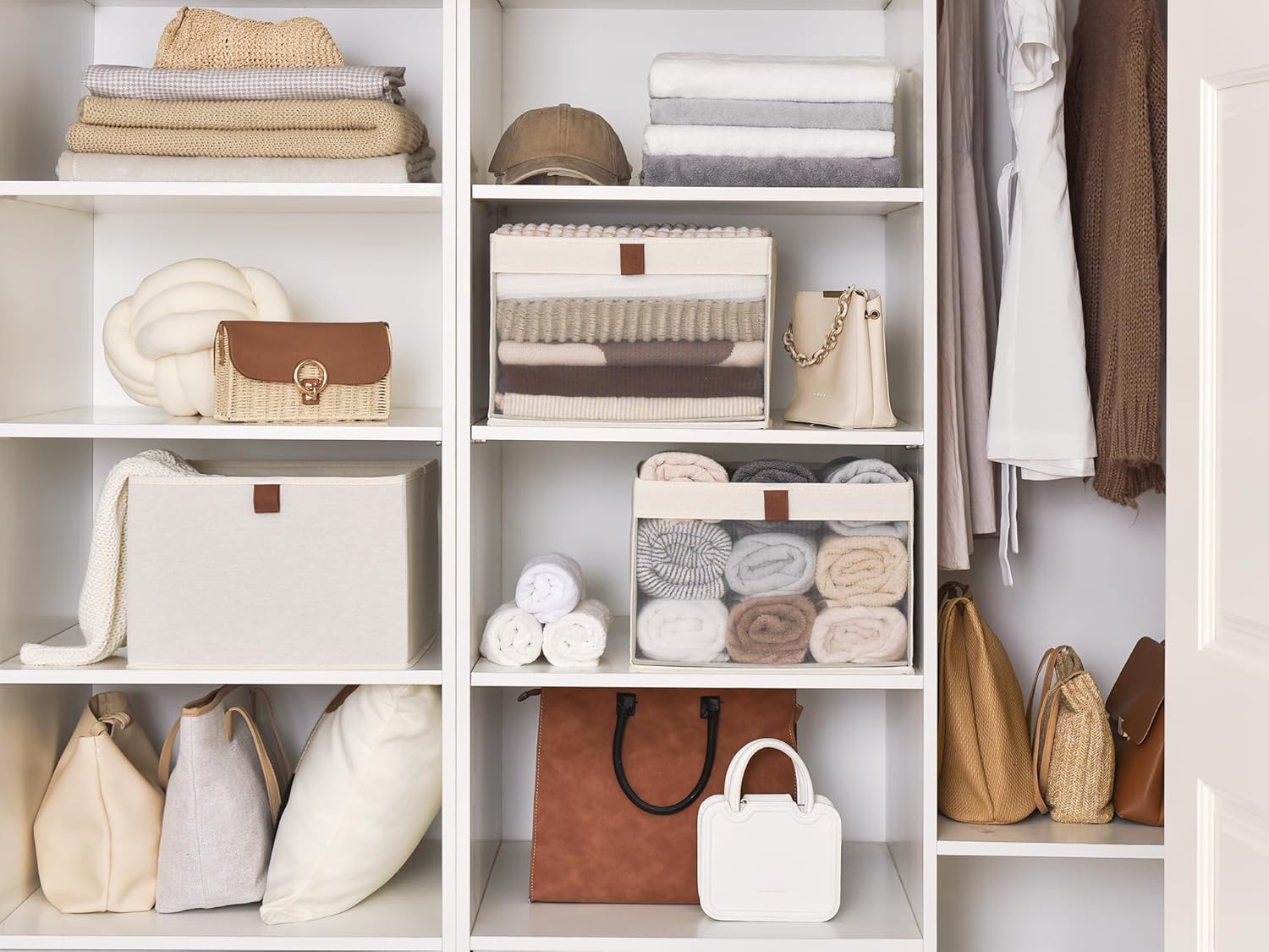 StorageWorks Closet Storage Bins, Extra Large Storage Baskets with Clear Window and Handles, Foldable Fabric Organizer for Clothes, Shelves, Beige, 3 Pack