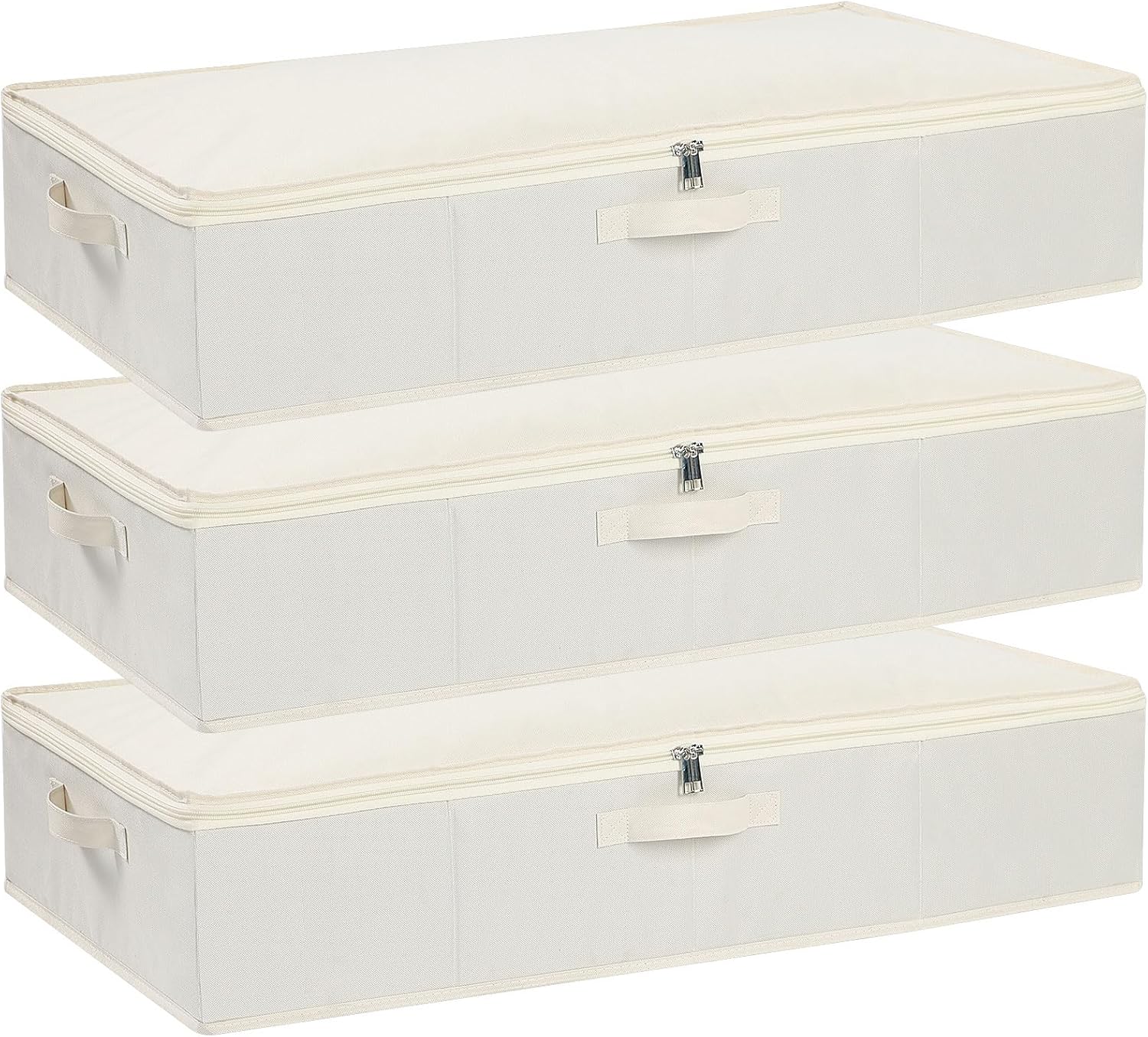 Underbed Storage Box, Clothes Organizer With Sturdy Structure and Reinforced Handles for Blanket, Sheets, Pillows, Towels, Shoes, Beige, 3 Pack, 31.5 x 15.7 x 5.9 Inch