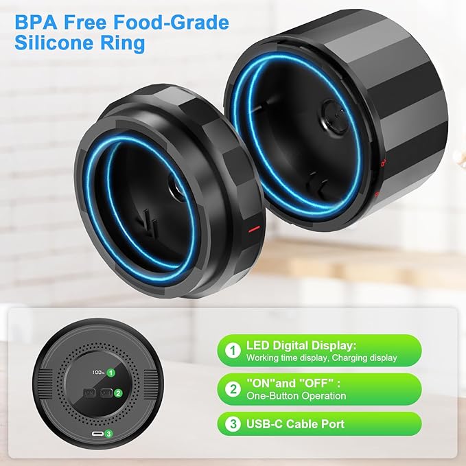 - Portable Cordless Design - Compact and rechargeable, this cordless vacuum sealer is perfect for travel, camping, and picnics. It includes a 12-month warranty and professional support within 12-24 hours.