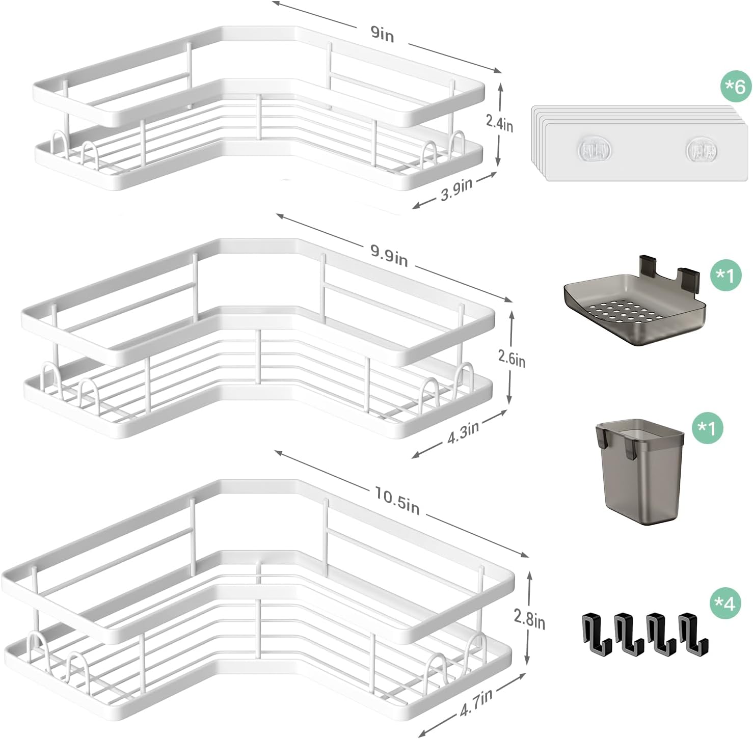 - [Space-Saving & Stylish Shower Caddy]: Upgrade L-Shaped corner shower caddy is designed for making great use of corner space. Great shower organizer can organize most toiletries in the bathroom and help to make your shower neat and clean. Shower shelf hold a lot of products and are great for keeping shower tub free from clutter.